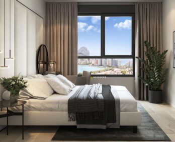 Modern and high quality apartment building in beautiful Calpe. Apartments with magnificent views are now for sale. Spectacular architecture and finishes are the breathtaking. Each apartment offers a large terrace with best views of Calpe: Arenal beach, La Fossa beach, Las Salinas lagoon and, of course, the Peñón de Ifach.