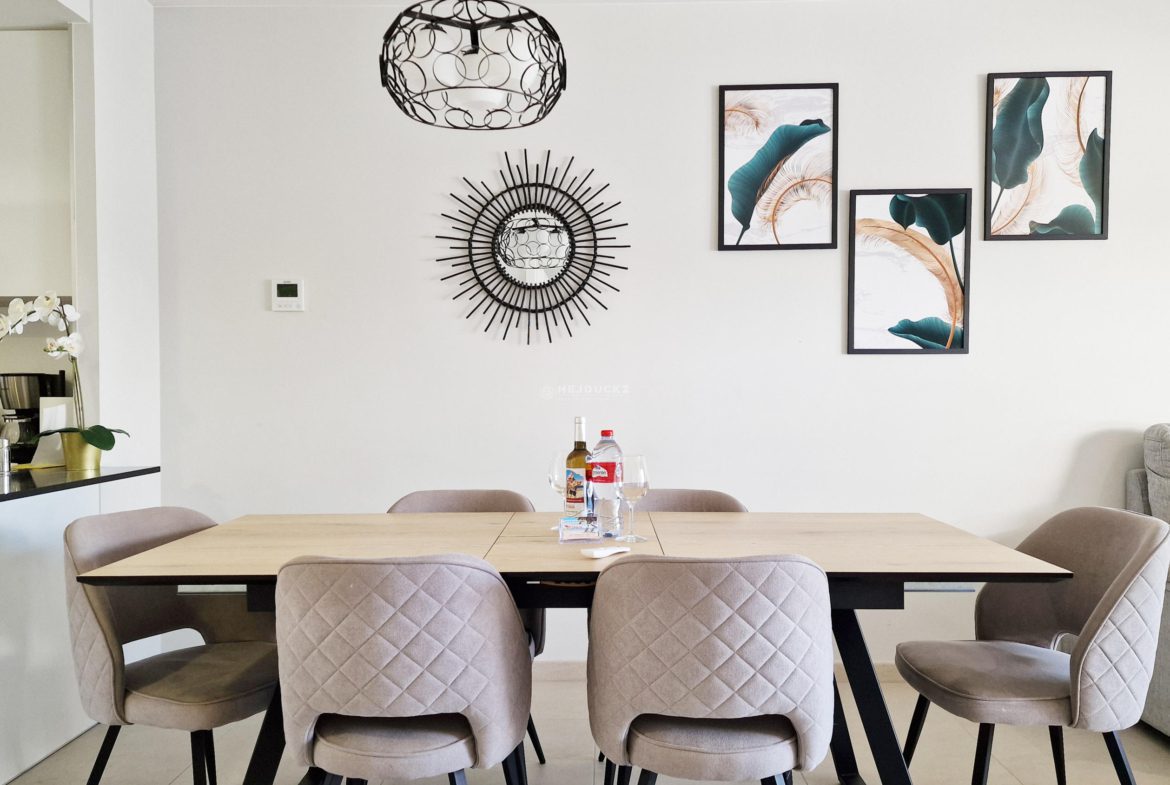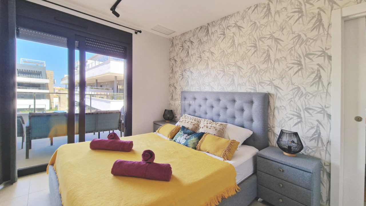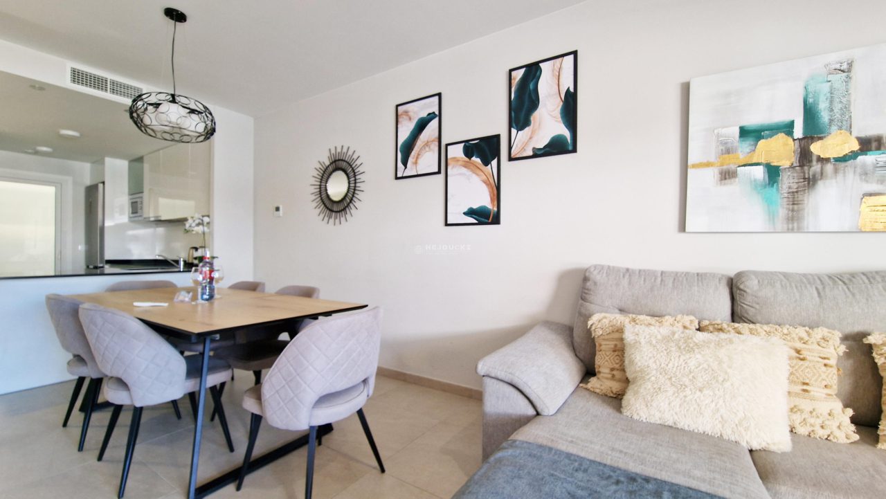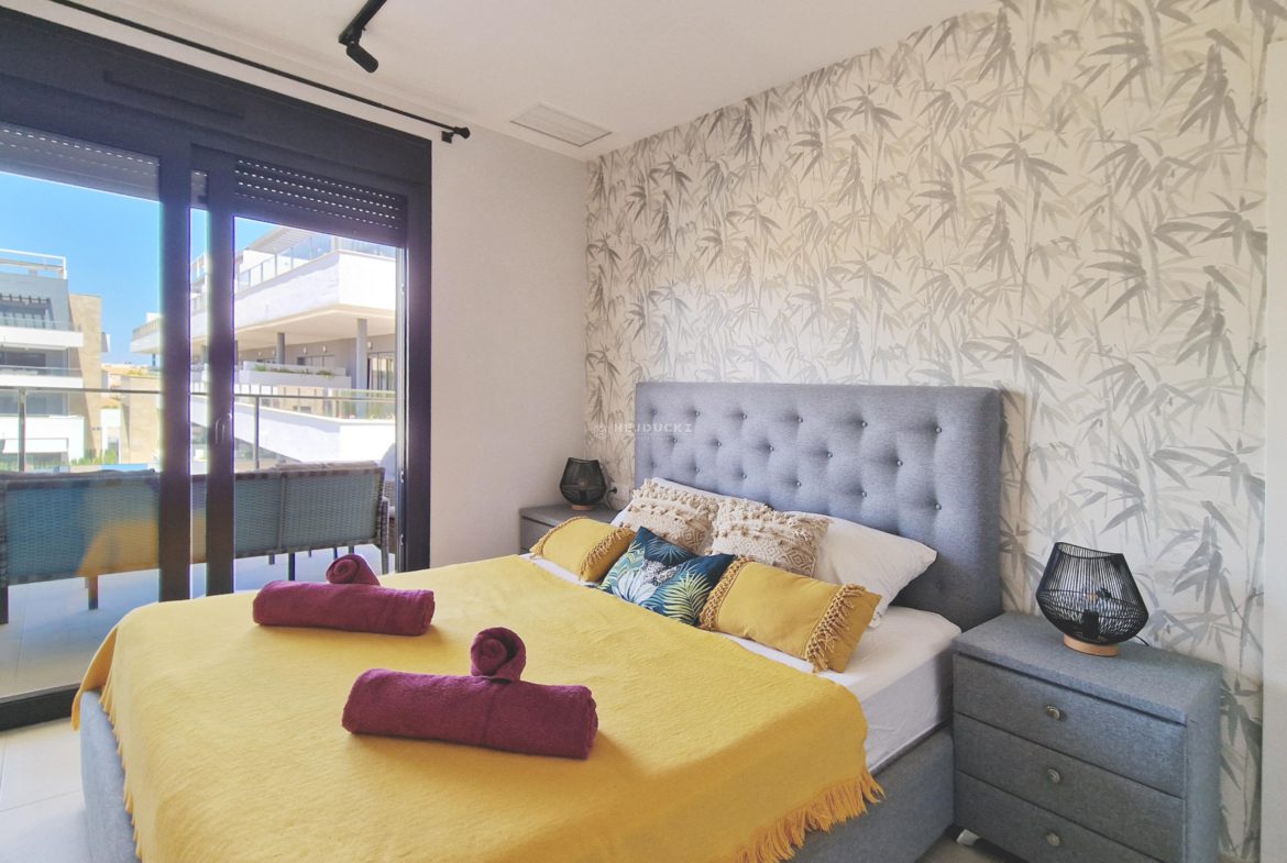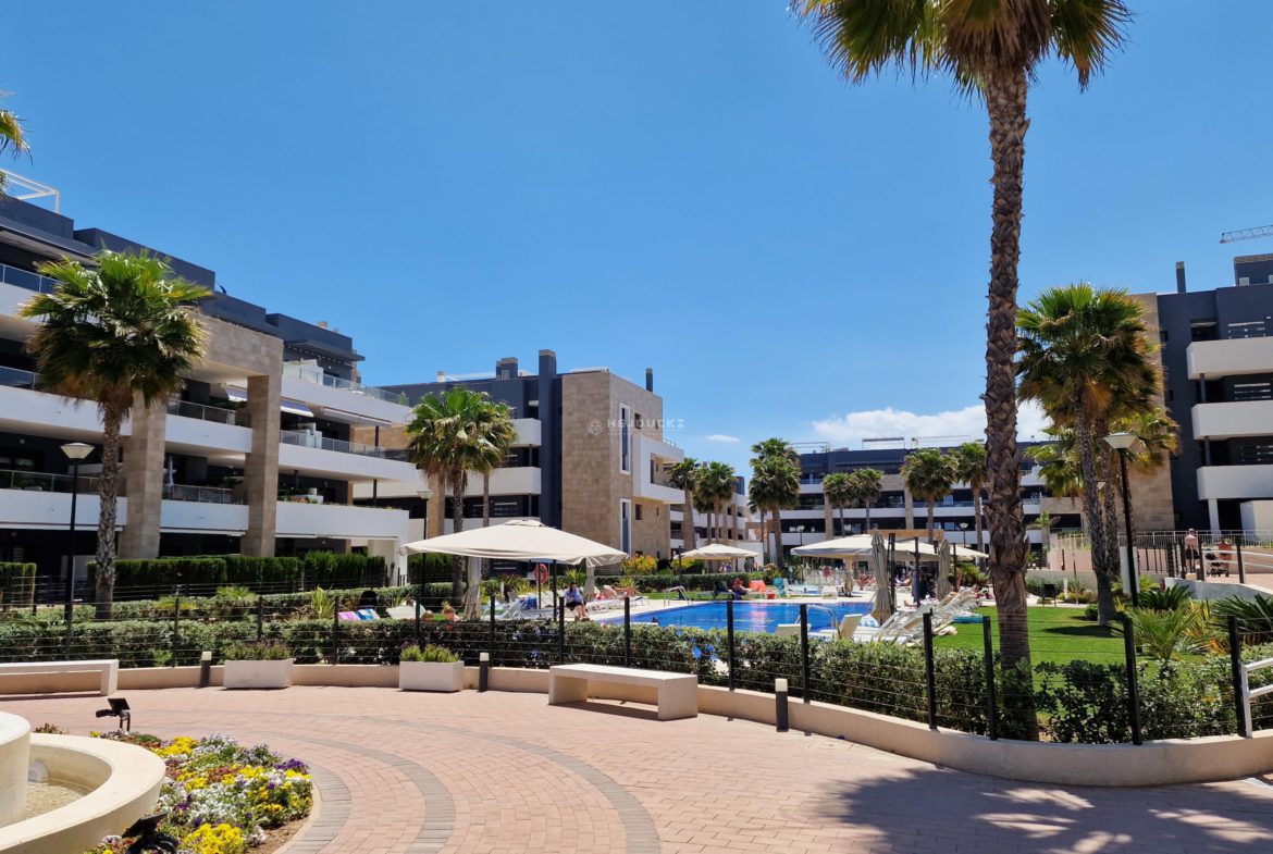 For sale a modern apartment on Playa Flamenca. Just 3 years old apartment with a tourist license in the well-known and popular district of Orihuela Costa. The apartment has 3 bedrooms, 2 bathrooms, a spacious living room with kitchenette. In the estate with beautiful common areas, several swimming pools, including one heated, sauna, gym, jacuzzi, beach bar and playground, we will find everything to relax. We have only 5 minutes to the sandy beach by car, and the airport in Alicante is about an hour’s drive. It is worth adding that the apartment is located close to the large La Zenia Boulevard shopping center. We invite you to contact us for more information.