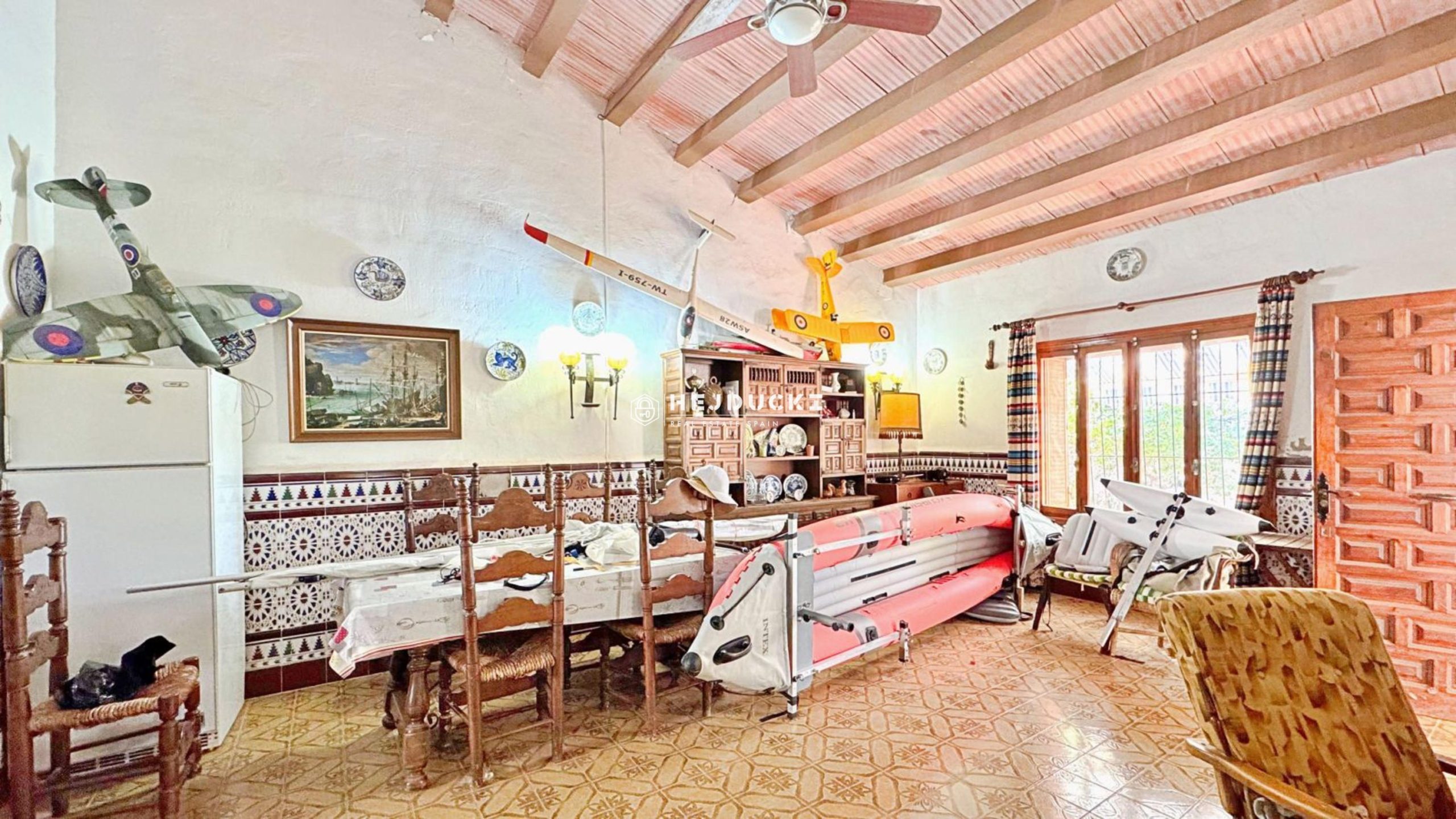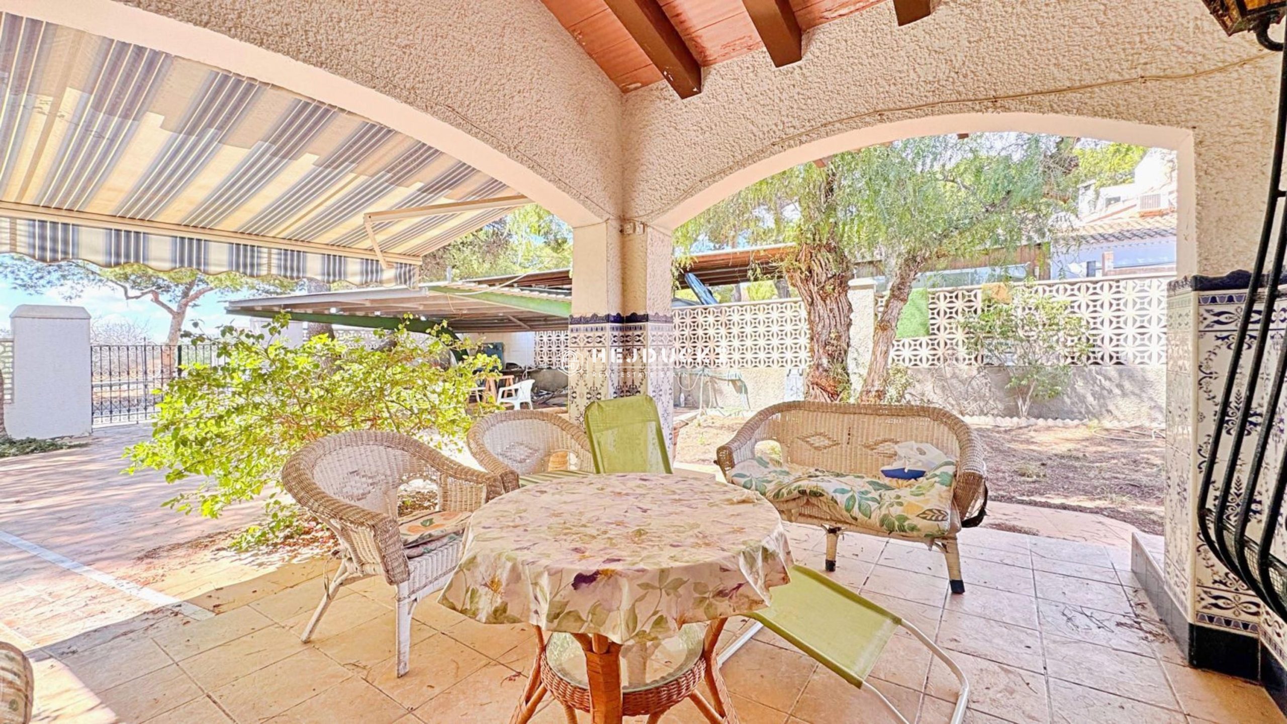 The house is designed in a rustic style, which adds warmth and character. The garden features a barbecue area and ample space for building a swimming pool perfect for relaxing on sunny days.