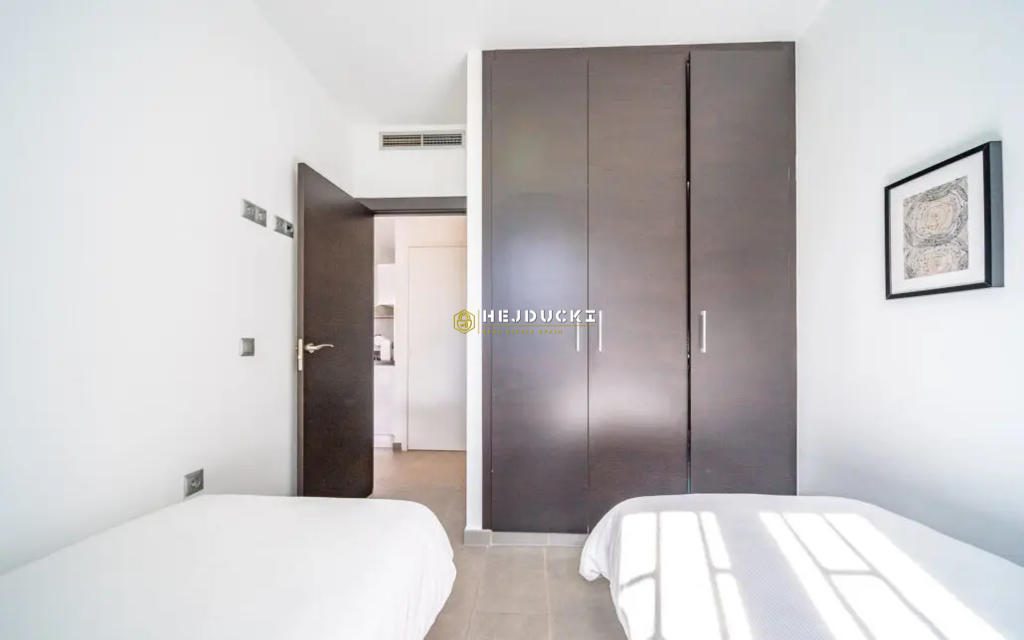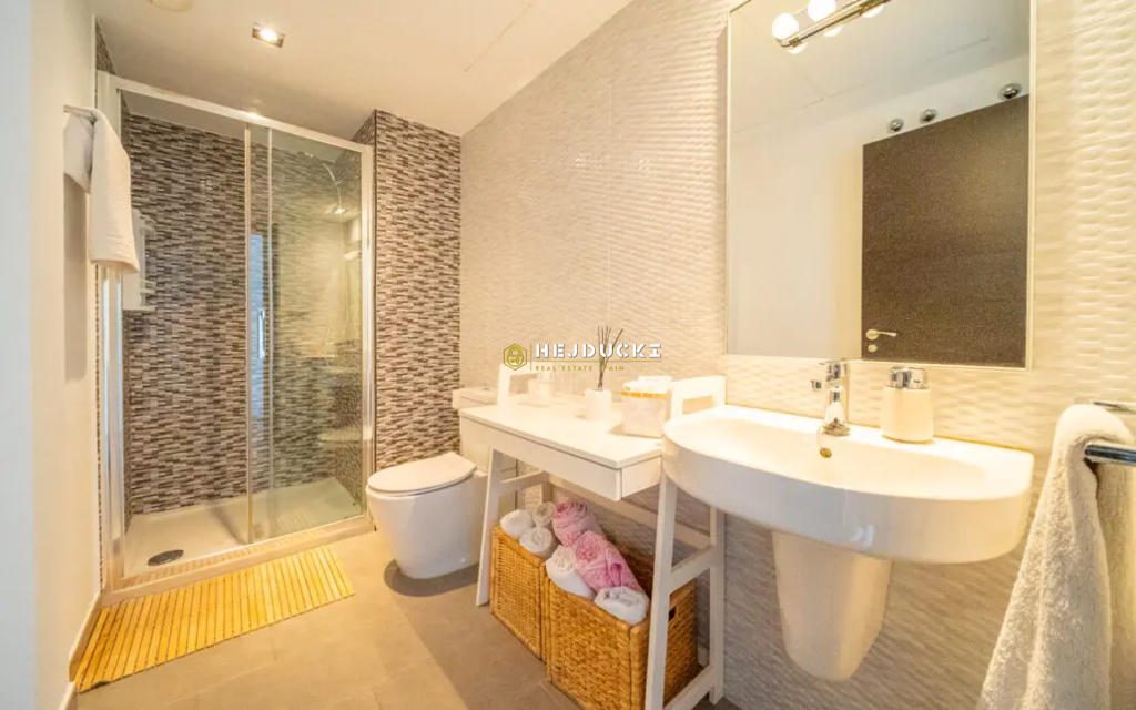 The apartment has a built area of 77 m² and features two spacious bedrooms and two modern bathrooms. It includes an independent, fully equipped kitchen and a large living-dining room that opens onto a generous terrace with breathtaking sea views. Its east-facing orientation ensures bright and sunny interiors from the early morning hours.