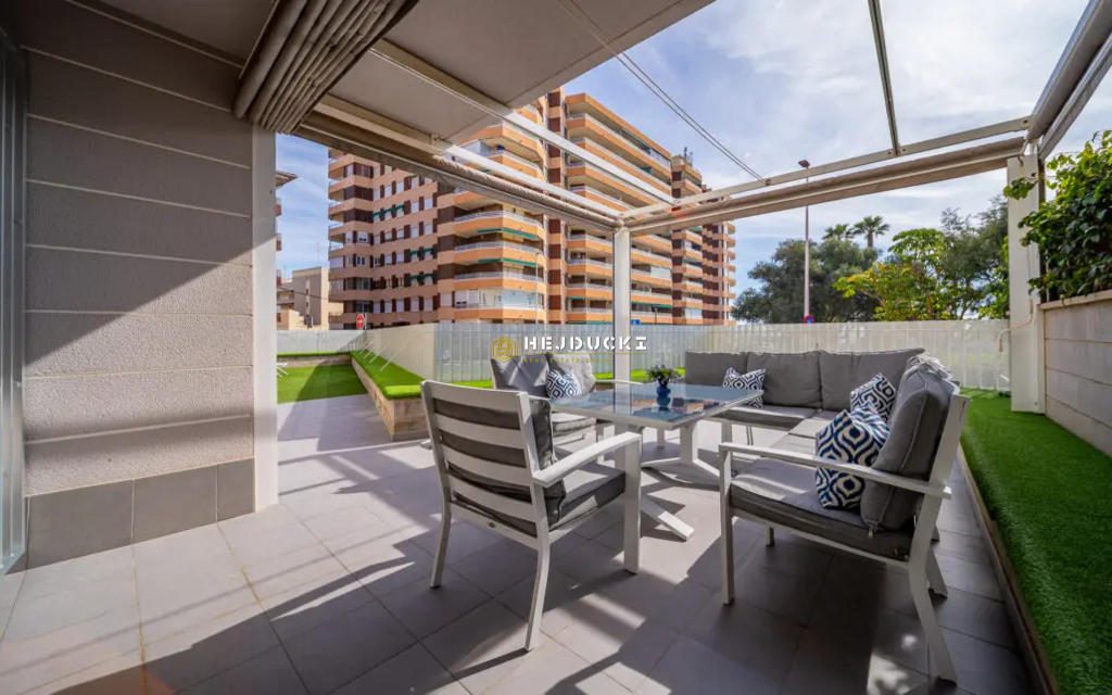 For sale an exclusive, fully furnished ground floor apartment located in a private residential complex, just a 2-minute walk from the beautiful beach of La Mata, Torrevieja. Built in 2016, this property offers year-round comfort, making it ideal both as a holiday home or a permanent residence.