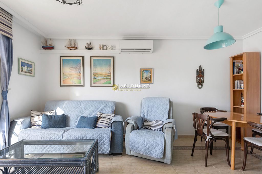 For sale a charming 2 bedroom apartment located in the heart of La Mata, Costa Blanca. This property features 2 bedrooms, a bathroom, a spacious living room with an open-plan kitchen, and a large balcony. The apartment is situated on the 3rd floor, ensuring it enjoys plenty of sunlight throughout the day. The property offers low maintenance costs and is only 100 meters from the sandy La Mata beach, one of the most sought-after locations on Costa Blanca. With just a 35-minute drive to Alicante International Airport, the location is highly convenient for both residents and holidaymakers. The apartment is situated in one of the healthiest areas in Europe. Surrounded by the unique green and pink salt lakes, along with a beautiful park of trees, the area provides an ideal microclimate for year-round living or vacationing. This apartment in La Mata offers great potential for investment or as a holiday home in one of the most desirable coastal locations on Costa Blanca. For more information or to schedule a viewing, please contact our real estate office.