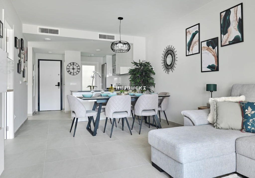 We offer a spacious apartment with a tourist license in one of the best developments in this part of the Costa Blanca. Apartment with three bedrooms and two bathrooms, living room with open kitchen and dining room and laundry room. The complex includes recreational areas, large swimming pools, one of which is heated, jacuzzi, children’s pools, pool bar, gym and Finnish sauna. An additional advantage is a double parking space included in the price of the property. Close to all services, supermarkets, gyms, bars and the La Zenia Boulevard shopping center. Just a few kilometers away there are three 18-hole golf courses: Golf Villamartín, Real Club de Golf de Campoamor and Golf Las Ramblas de Campoamor. Modern, furnished apartment, ready to move in or as an investment.