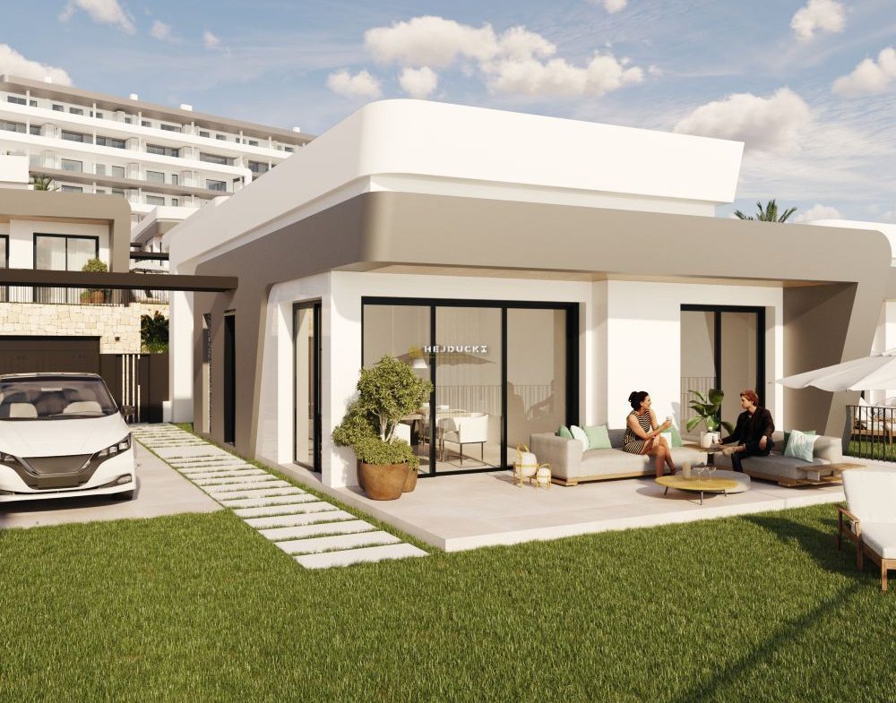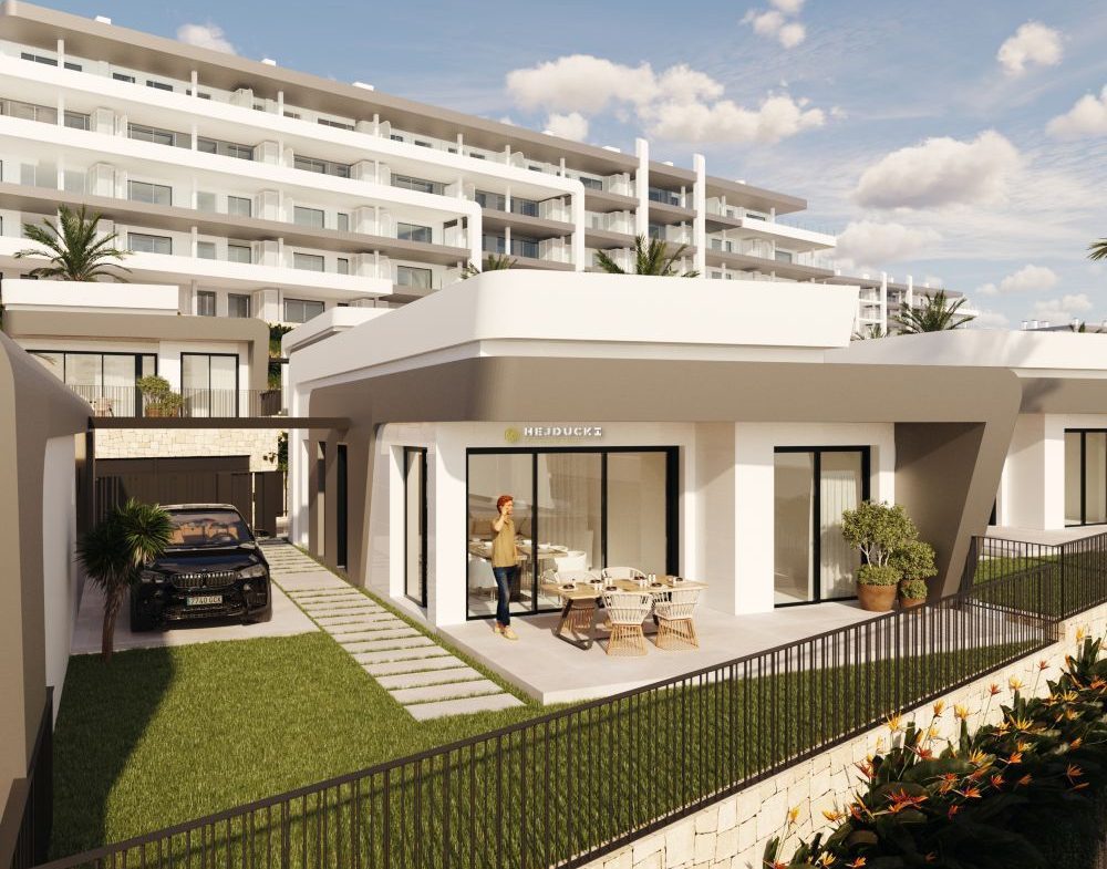 Modern apartments and villas for sale next to the famous golf course in Alicante. The apartments have 2 or 3 bedrooms, 2 bathrooms, a spacious living room with access to a large terrace. All apartments have a parking space and a storage room. Prices from EUR 245,000 net. The second interesting option are independent villas with 3 bedrooms and 2 bathrooms, fully furnished. Outside, we have a spacious garden with a place to relax, and a large garage under the house. Prices start from EUR 310,000 net. The location is very good for people playing golf and more. Alicante is just a few minutes’ drive away.