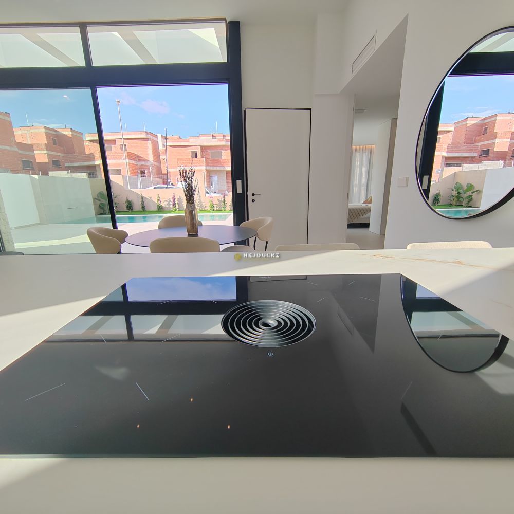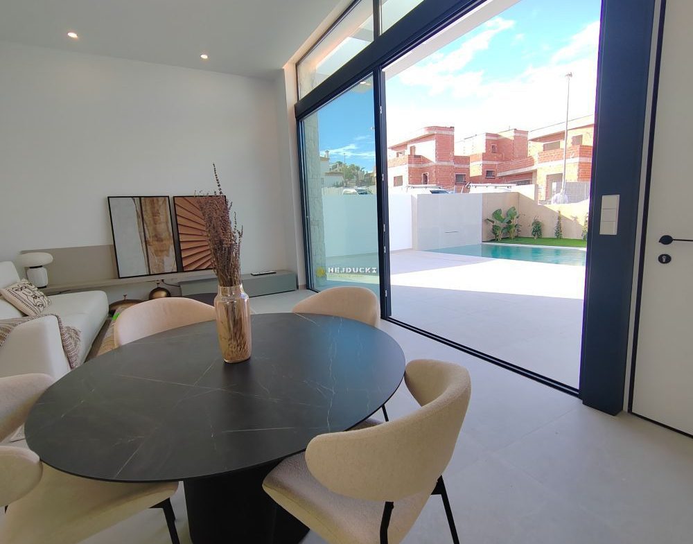 Beautiful, new villas for sale in Rojales. The house with a private pool has 3 or 4 bedrooms, a large, spacious living room, and 3 fully equipped bathrooms. An ideal offer for people who like peace, quiet and comfort. The design of the house is tailored to the client’s needs, it is possible to build a single-level villa or a villa with a basement. High-quality materials used in construction, large windows providing plenty of daylight. Very good location, right next to the golf course, the beach is only 10 minutes away by car and the airport in Alicante is within 35 minutes. More information only with us.