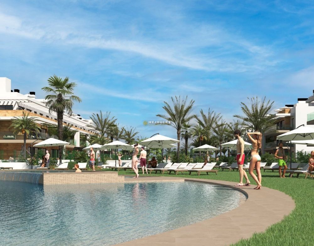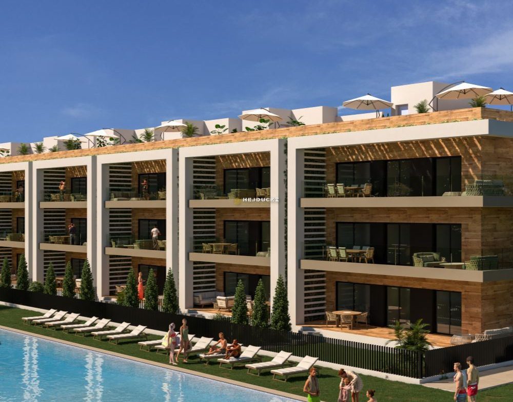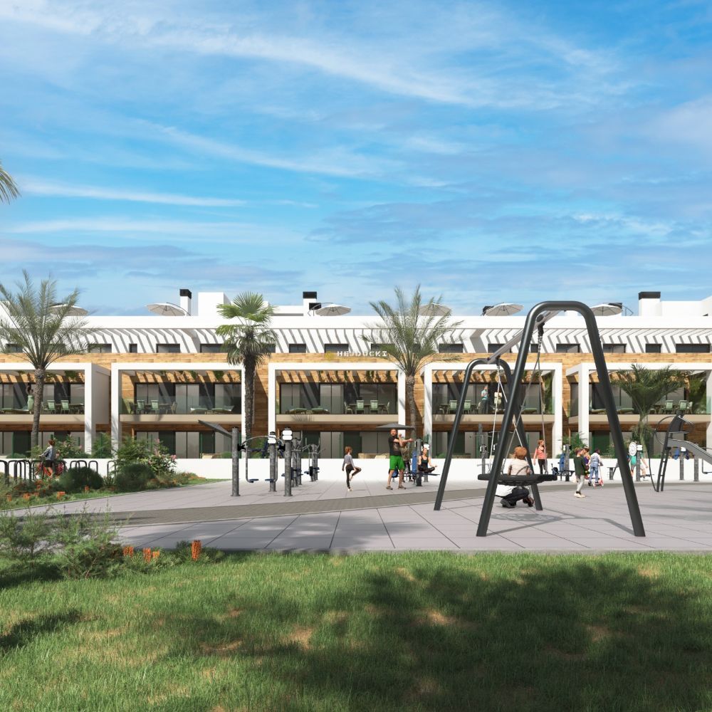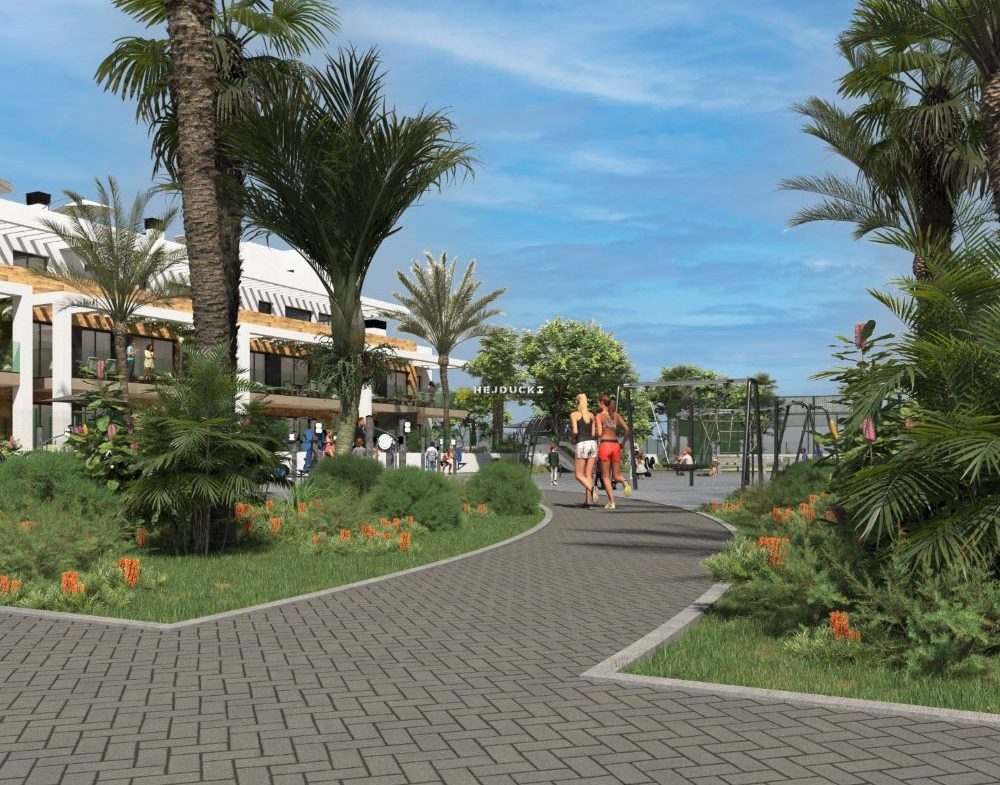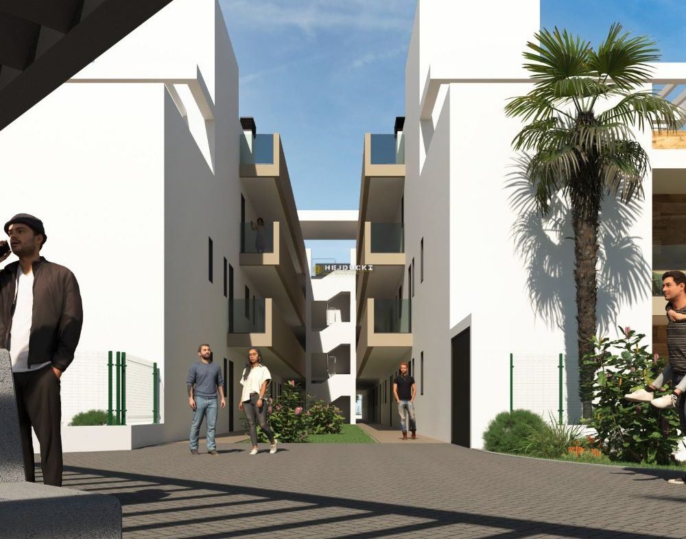 Another development complex with apartments and villas for sale. Apartments with 2 or 3 bedrooms in blocks of 3 or 4 floors. The upper apartments will have a private solarium and the ground floor apartments will have gardens. Everything is very nicely decorated and modernly finished. Next to the apartments, 20 independent villas with swimming pools will also be built. A well-known and popular golf course, very well connected, close to all other services. The beach is just a few minutes’ drive away. Prices start from 220,000 euros, more information at our office in La Mata.