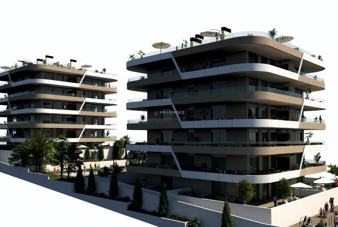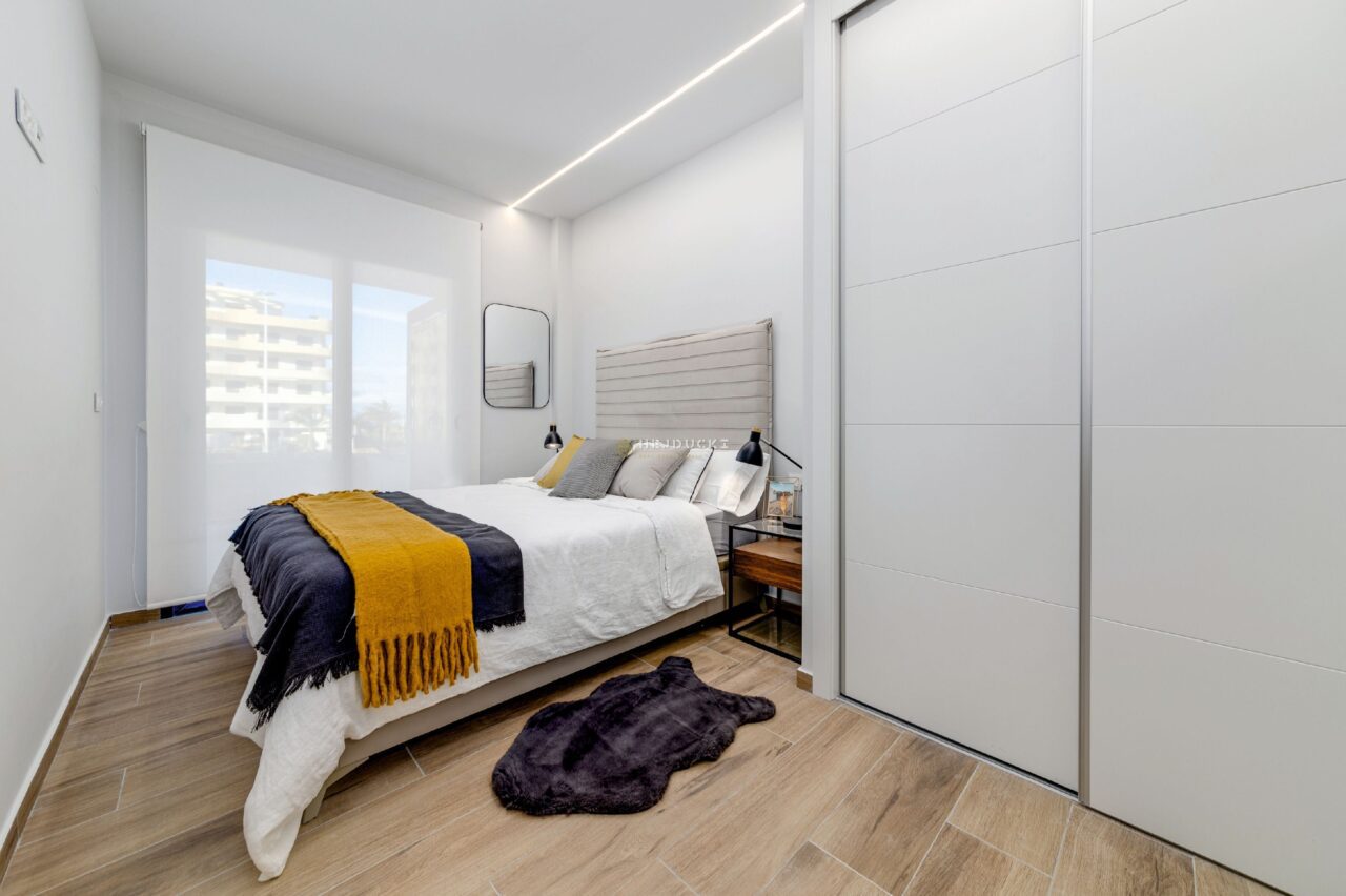 For sale the next phase of modern apartments in Arenales del Sol. They have two bedrooms and two bathrooms, an adjustable living room with a very large terrace of about 50 square meters. Perfect location for a family holiday, just a few minutes to the sandy beach and about 10 minutes to the airport by car. The apartments are sold with a parking space and a storage room. More information at our office in La Mata.