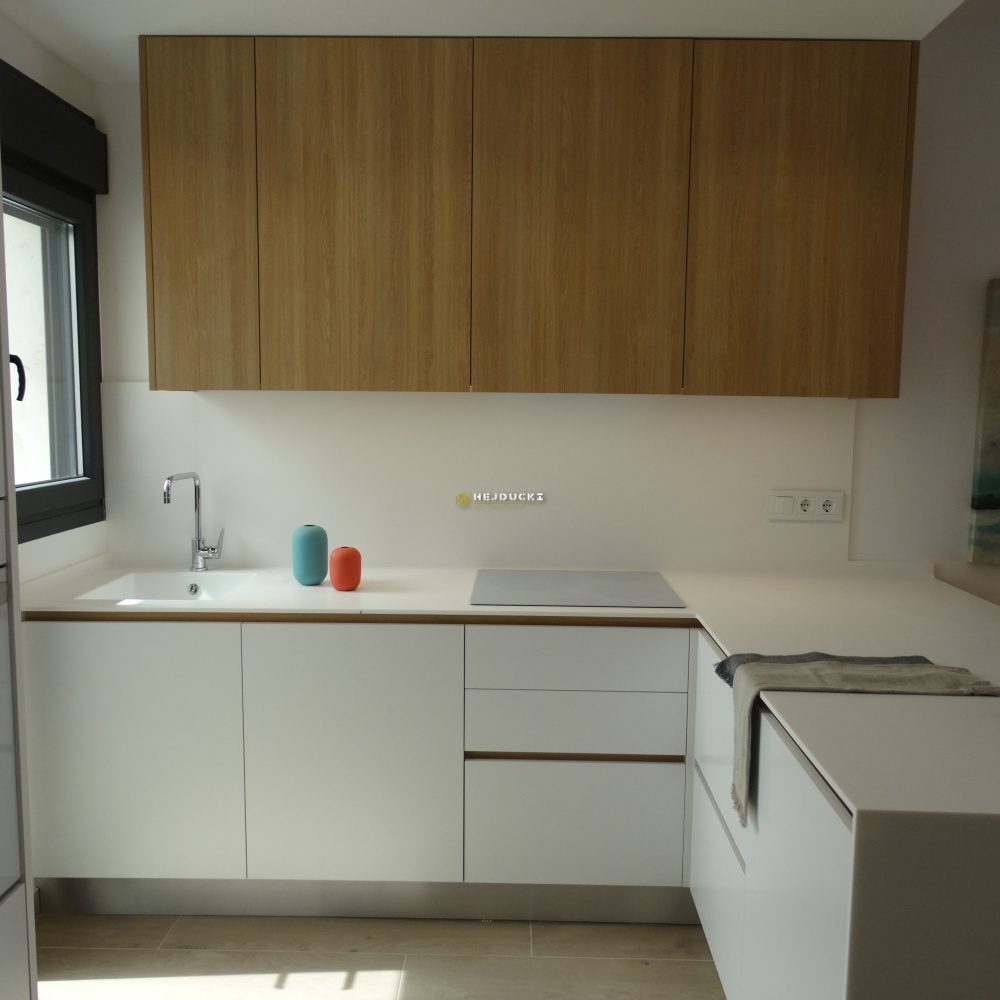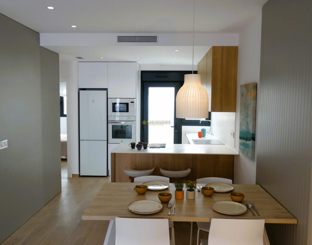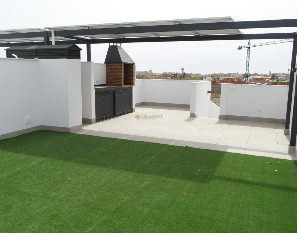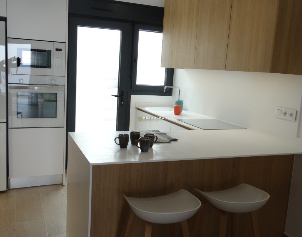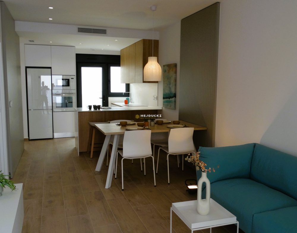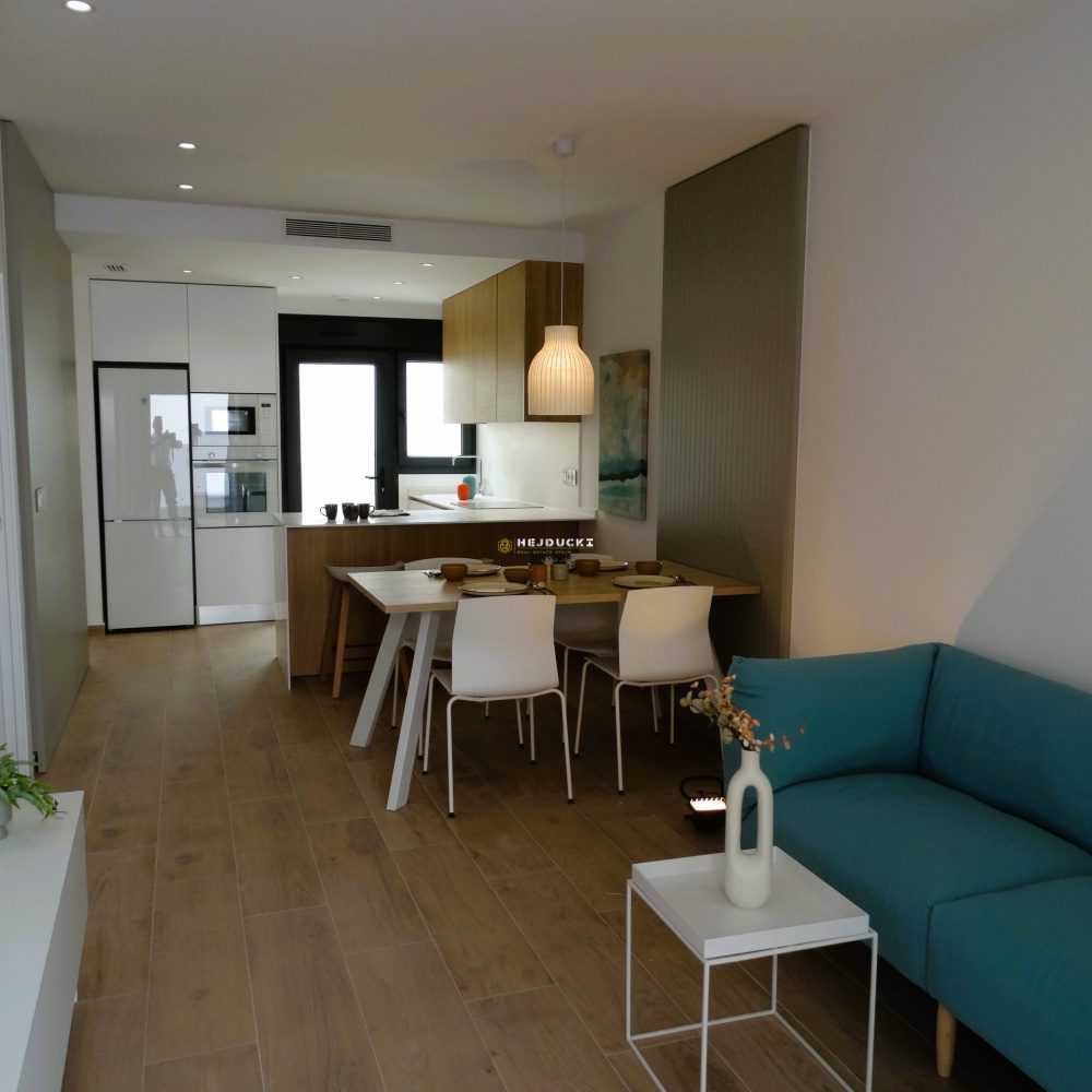 Another phase of terraced bungalows in Pilar de la Horadada. The houses have 2 bedrooms, 2 fully furnished bathrooms, a living room with access to the terrace. Upper bungalow priced from euro 285,000. Pilar is a town located south of Alicante, about an hour and twenty minutes from the airport. The wide, sandy beach is just over 2 km away, all bars and shops are on site. An ideal offer for a holiday break or permanent residence. Feel free to contact us.