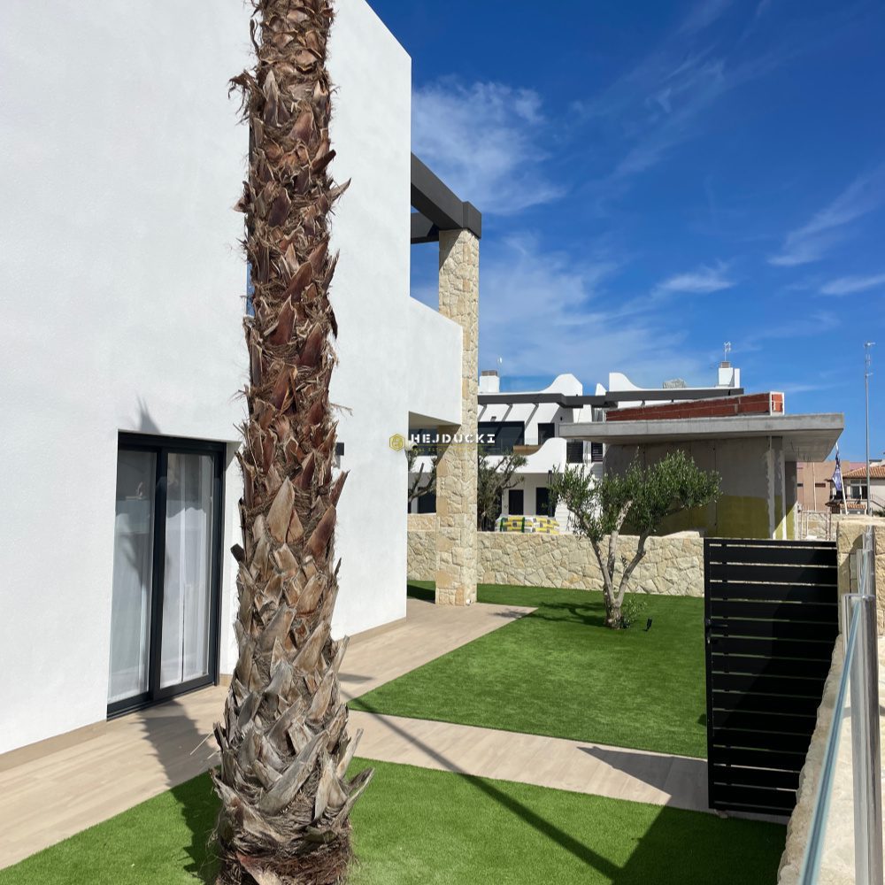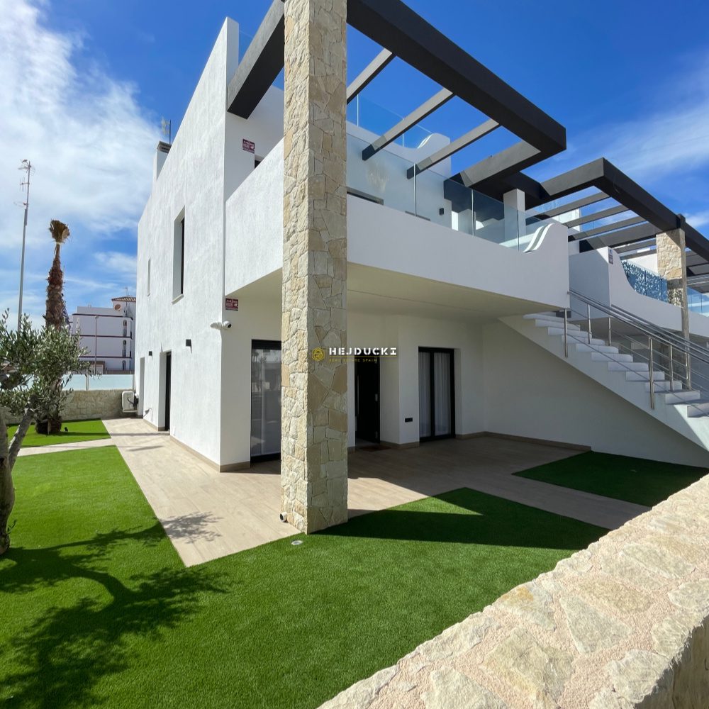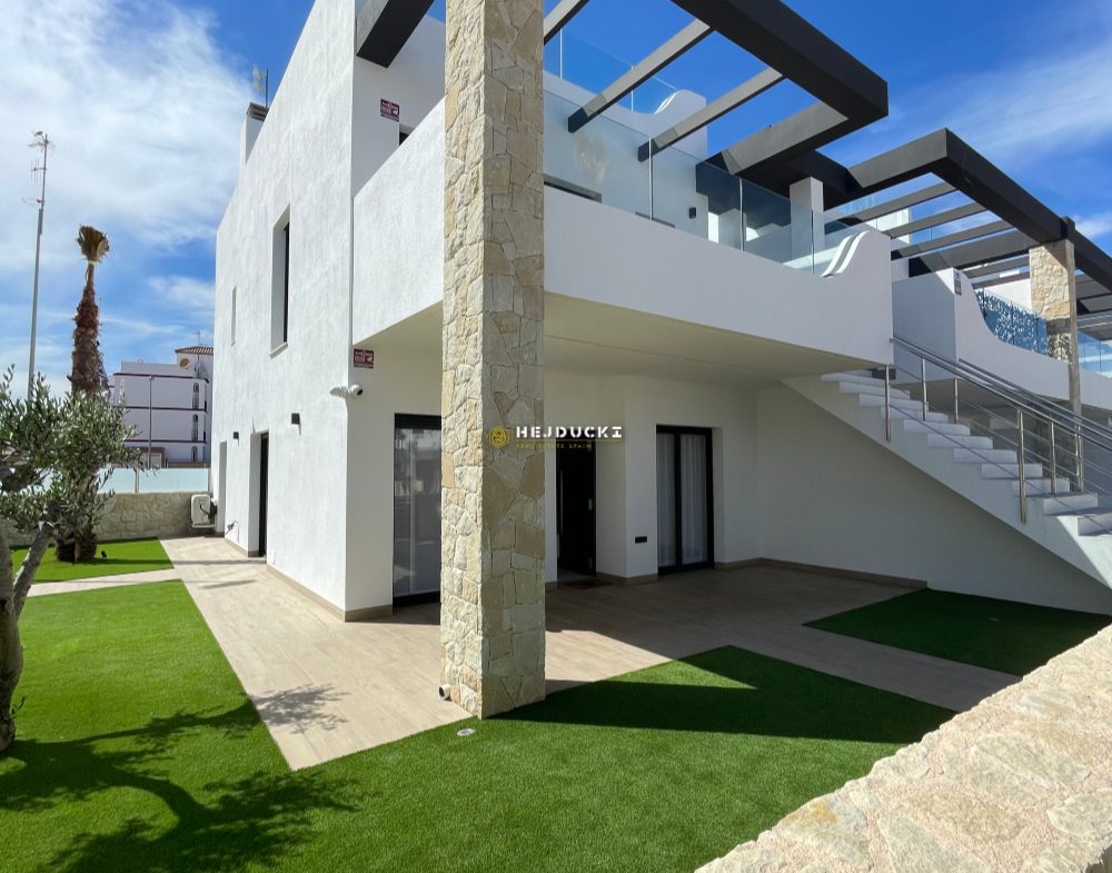 Another interesting proposition for you, this time an upper bungalow with a solarium or a lower bungalow with a patio. Modern developer houses are now on sale in Punta Prima. They have one bedroom and two bathrooms, fully furnished. A spacious, well-arranged living room with a kitchenette and direct access to the patio or balcony. The upper bungalow has a large solarium with a barbecue area and a jacuzzi, the lower bungalow has a barbecue area and a place to relax. In the estate, We have a common swimming pool for residents and each house has an allocated parking space. An ideal offer for permanent residence or tourist rental, all services within a few steps. Alicante airport is 50 minutes away by car. More information only at our office.