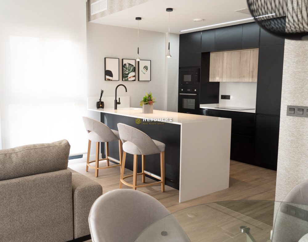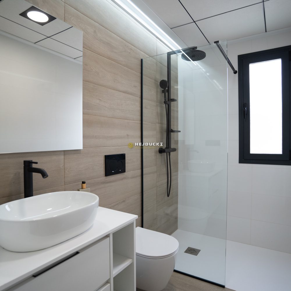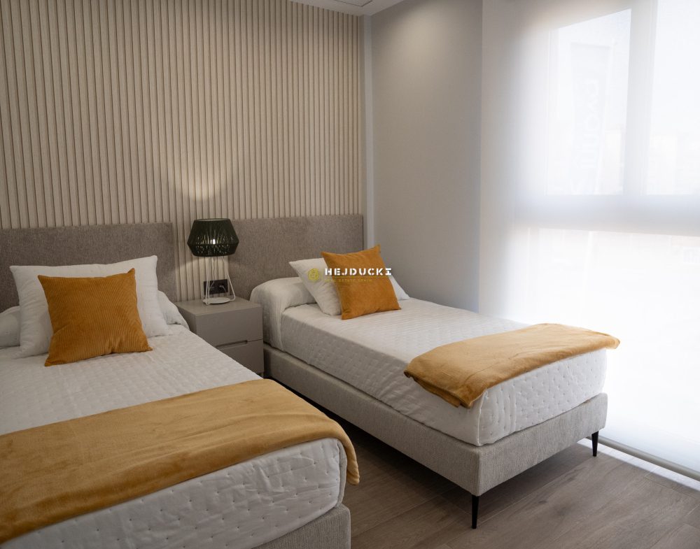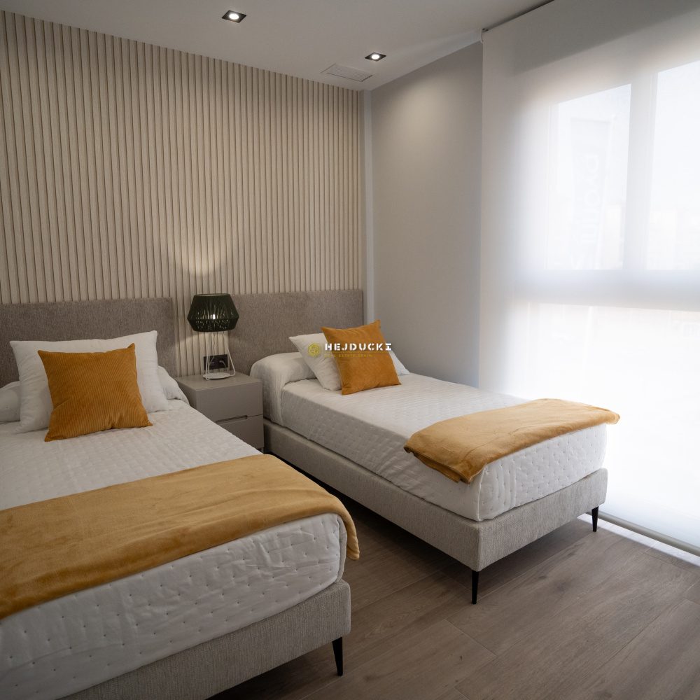 Another interesting proposition for you, this time an upper bungalow with a solarium or a lower bungalow with a patio. Modern developer houses are now on sale in Punta Prima. They have one bedroom and two bathrooms, fully furnished. A spacious, well-arranged living room with a kitchenette and direct access to the patio or balcony. The upper bungalow has a large solarium with a barbecue area and a jacuzzi, the lower bungalow has a barbecue area and a place to relax. In the estate, We have a common swimming pool for residents and each house has an allocated parking space. An ideal offer for permanent residence or tourist rental, all services within a few steps. Alicante airport is 50 minutes away by car. More information only at our office.