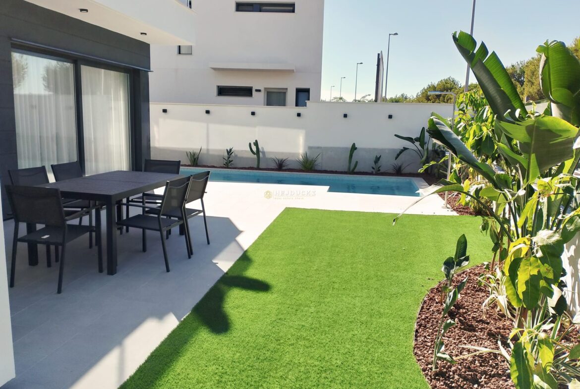 Another interesting villa project for sale next to the golf course in Roda. They have 3 bedrooms and 2 bathrooms fully furnished. Outside, we have a spacious garden with a private swimming pool and a place to relax. The location is very convenient for people who play golf. The sandy beach is only a 15-minute drive away, and the airport in Murcia is about 30 minutes away. More information only at our office.