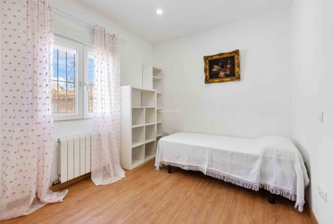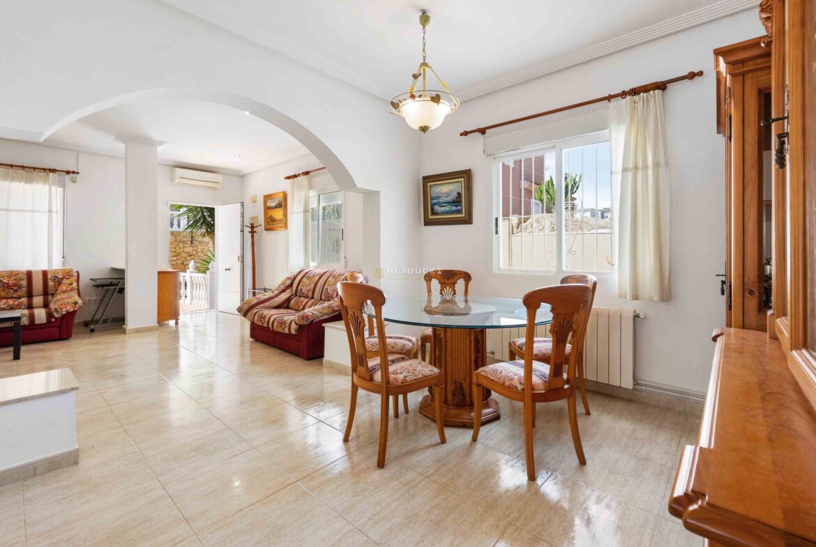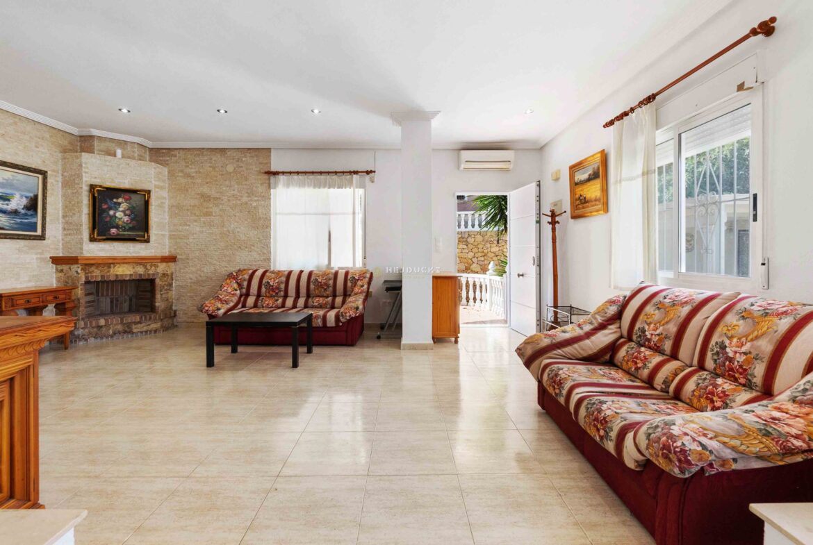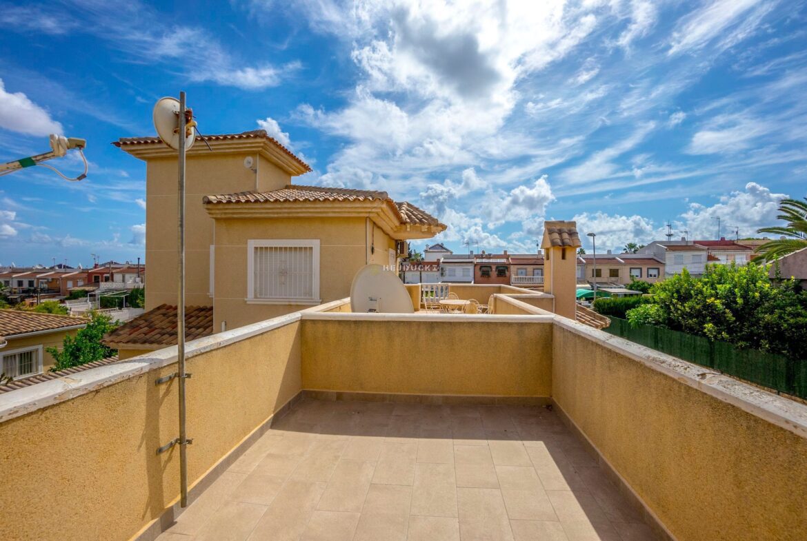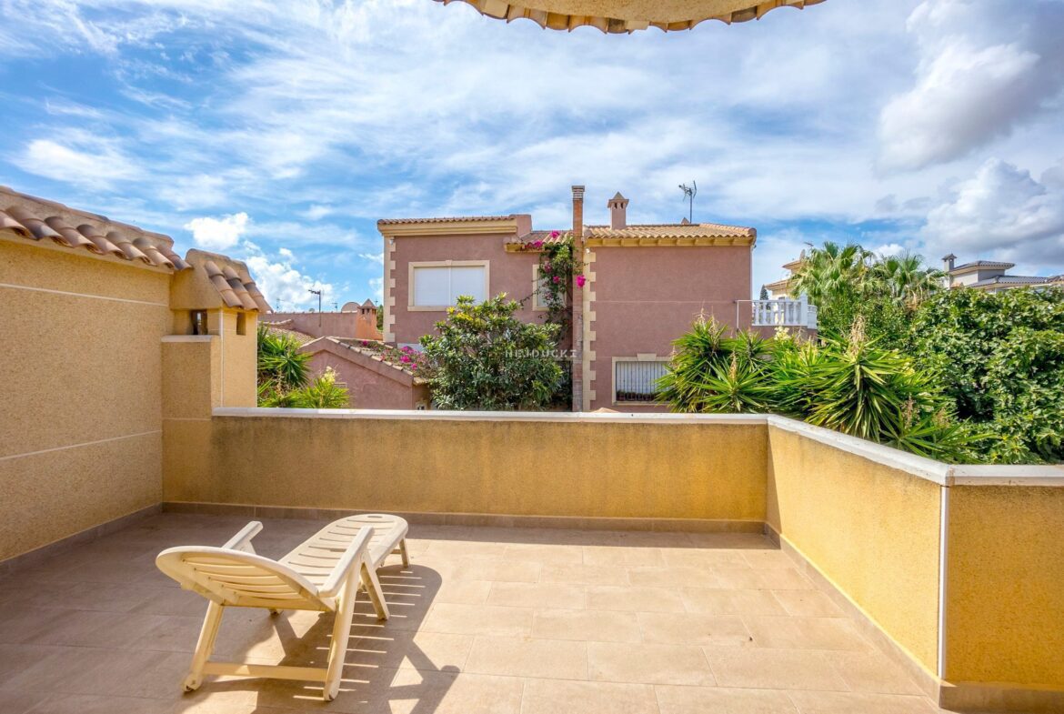 Villa for sale in Los Balcones. It has an area of 138 m2, a large living room with a kitchen and direct access to the garden of the house. It has 4 fully equipped bedrooms and two spacious bathrooms. The property is ideal for people looking for a comfortable home.