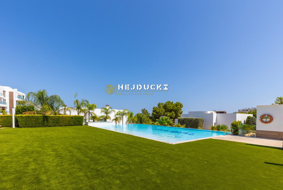 For sale luxury penthouse in Las Colinas Golf in Orihuela Costa. The apartment has two bedrooms, two fully equipped bathrooms, a spacious living room with kitchen and dining room. A big advantage is the terrace overlooking the communal pool and green areas, and it also has a private solarium with a daily kitchen. The apartment includes a parking space and a storage room. Las Colinas situated in the heart of Spain’s southern Costa Blanca, is a prestigious residential enclave. It is surrounded by not only one of the top golf courses in the country but also stunning Mediterranean landscapes, and charming nature trails, offering an unparalleled natural setting in the region. The resort also boasts an extensive array of sports and leisure facilities, including the Las Colinas Sports and Health Club, a racquet club, and three restaurants, each offering a unique culinary experience. Ideally located just 40 minutes from Alicante Airport and an hour from Murcia-Corvera Airport.