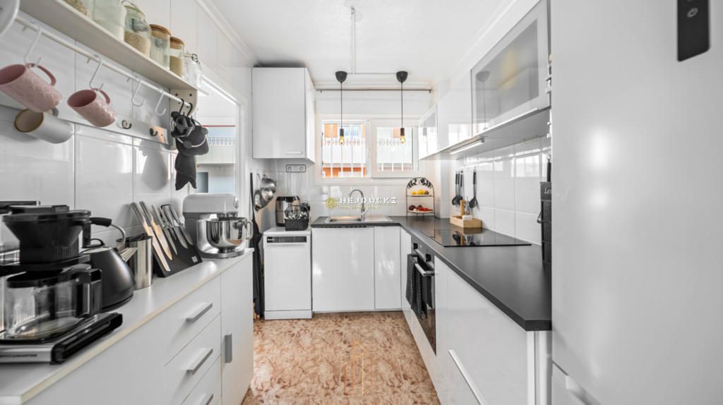 Renovated 2-bedroom, 1-bathroom apartment in Punta Prima, close to the sea. This renovated fifth-floor apartment in Punta Prima enjoys a south-facing orientation and is just 800 meters from the sea. It is also only a 5-minute walk to the popular area of Punta Prima, which offers a wide selection of restaurants, shops, and all necessary amenities, with a lively atmosphere throughout the year.