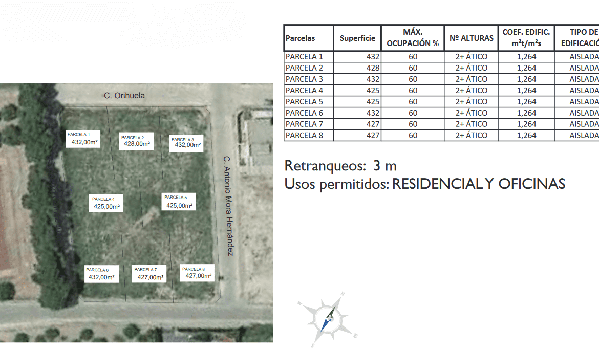 8 plots for sale designated for residencial use are for sale in Rafal. The prices starting from just 79.900 euros depending on size ( starting from 425m2) and orientation. If you need frurther details, please contact.