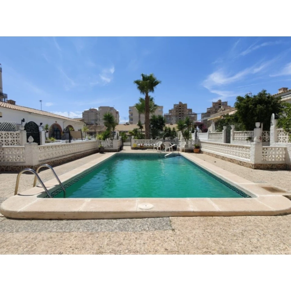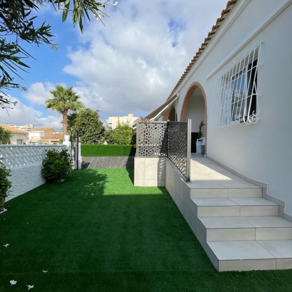 Great single storey detached bungalow with no upstairs neighbours in Nueva Torrevieja for sale. Situated in a gated residencial of 16 bungalows. It has its own parking space and communal swimming pool.