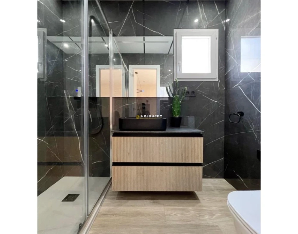 Completely new reform from 2023 with contemporary style 2 bedrooms, 2 bathrooms, kitchen-living room, upper terrace with views to the pool, lower terrace with grass and green areas.