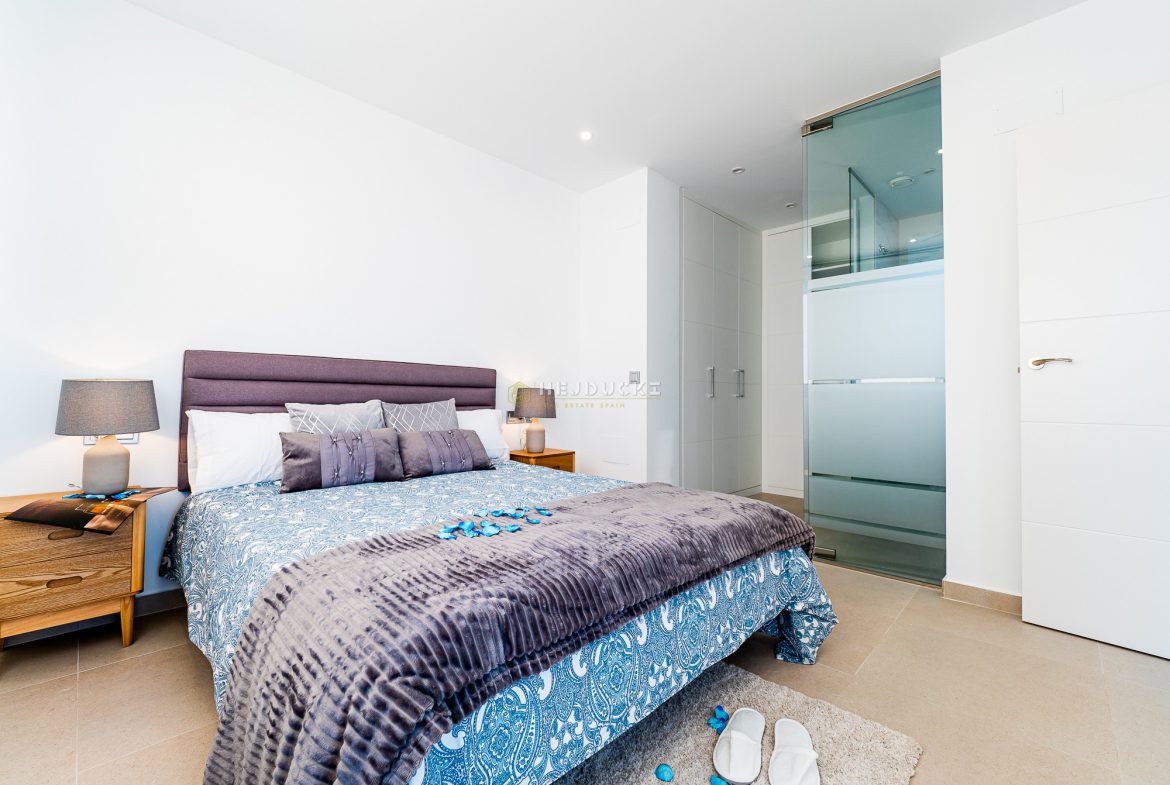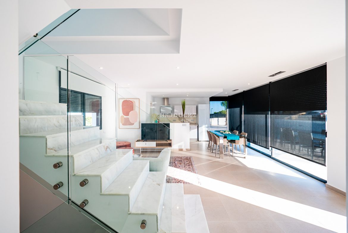 Another development offer by the golf course. 30 single-family houses surrounded by greenery. Algorfa is a town located just 20 minutes from sandy beaches and about 30 minutes from Alicante airport. Golf enthusiasts will find one of the best golf courses on the Costa Blanca. The villas have 3 bedrooms and 3 bathrooms fully finished. Prices start from 337,000 plus VAT.