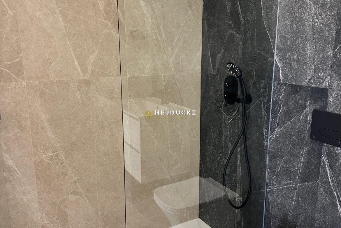 Nieruchomości wyróżniają się wysoką jakością wykonania i nowoczesnym wyposażeniem: stolarka aluminiowa z przekładką termiczną, elektryczne rolety, oświetlenie LED i designerskie włączniki, łazienki z brodzikami z żywicy i szklanymi kabinami prysznicowymi, nowoczesne kuchnie w otwartym układzie, preinstalacja klimatyzacji kanałowej oraz współczesny design połączony z wysoką efektywnością energetyczną.