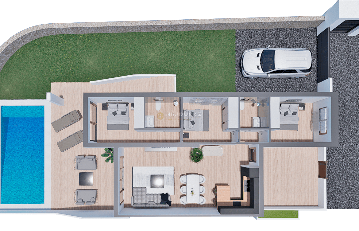 Bungalowy w ofercie z 2 sypialniami i 2 łazienkami w pełni umeblowane od 289 900 euro.