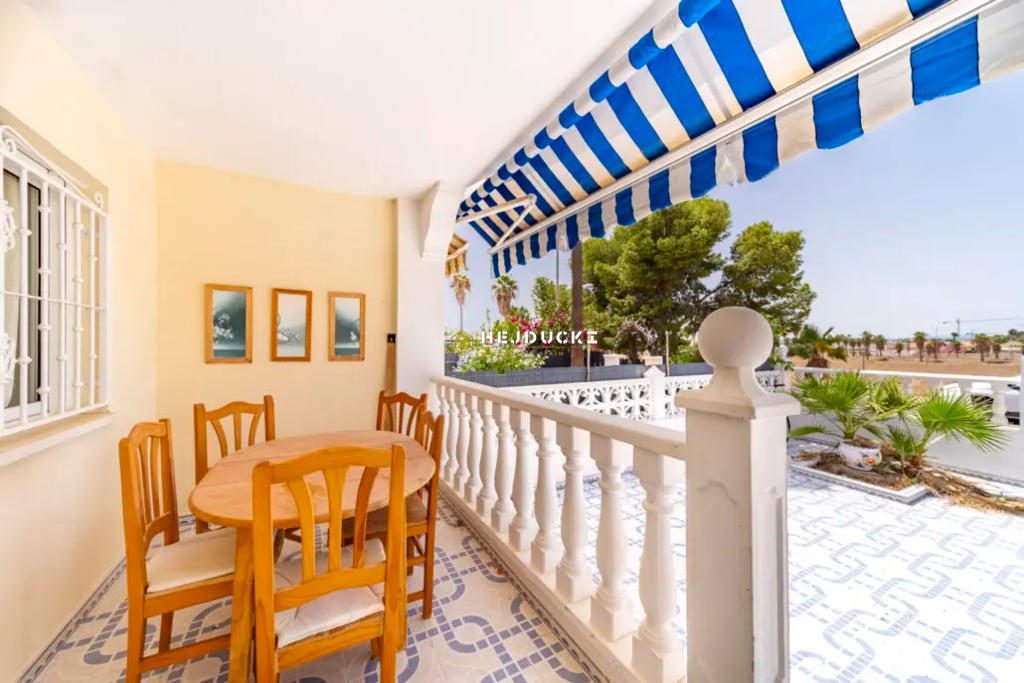 W spokojnej, rezydencyjnej dzielnicy Doña Pepa w Ciudad Quesada znajduje się przytulny szeregowiec o powierzchni 101 m² z prywatnym ogrodem o wielkości 50 m². Nieruchomość została wybudowana w 2004 roku i rozłożona jest na dwóch kondygnacjach. Oferuje trzy sypialnie, z czego jedna znajduje się na parterze, oraz dwie łazienki. Oddzielna kuchnia ma bezpośrednie wyjście na tylny taras, co zapewnia wygodę w codziennym użytkowaniu.