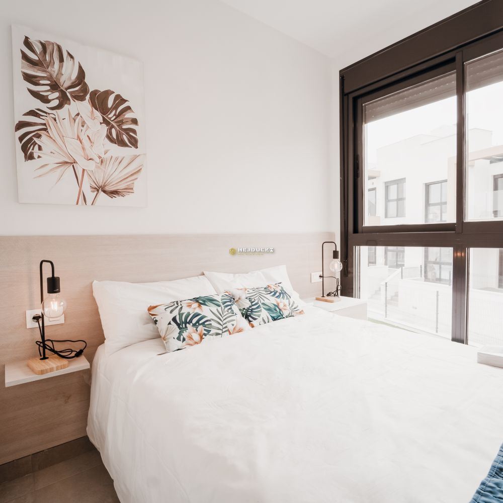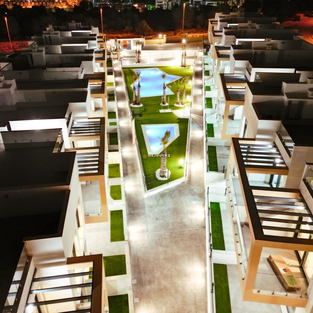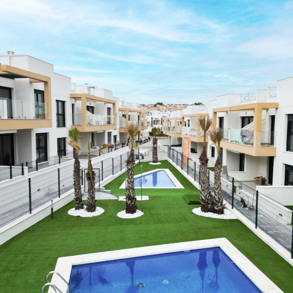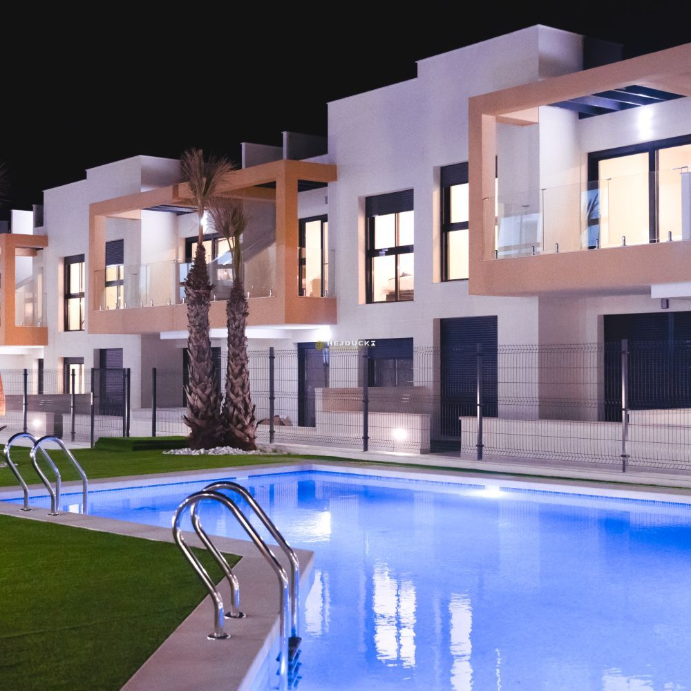 Gotowe bungalowy na sprzedaż w słynnej dzielnicy Los Altos. Górny bungalow posiada przestronne solarium z otwartym widokiem, dolny bungalow posiada patio. Jest 9 dolnych i 4 górne z dwoma sypialniami i 2 łazienkami, wykończone pod klucz. Idealna oferta dla rodzin pragnących mieć własne miejsce na Costa Blanca. Plaża oddalona jest o około 3 km, wszystkie usługi takie jak bary i sklepy znajdują się w odległości kilku kroków. Dodatkowym atutem jest ładny basen na osiedlu dla mieszkańców. Lotnisko w Alicante oddalone jest o około 1 godzinę jazdy samochodem.