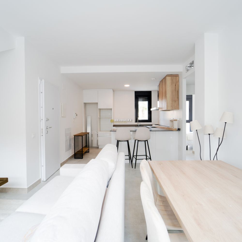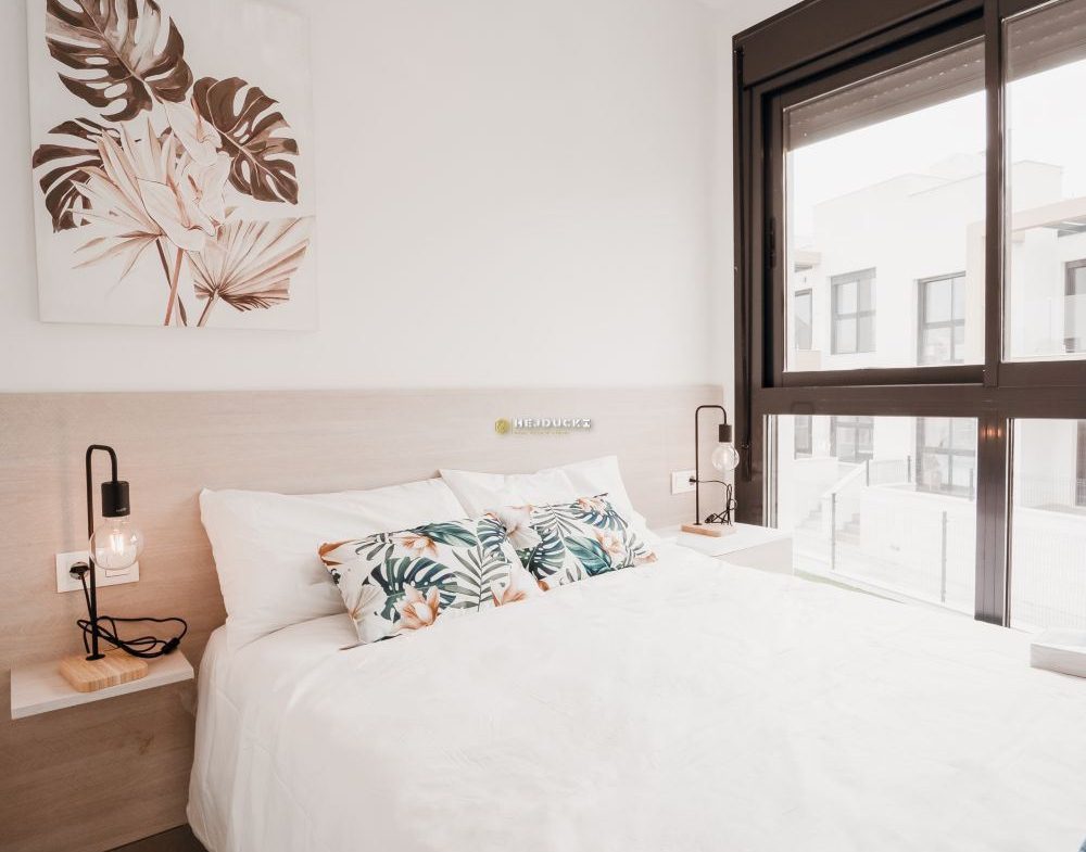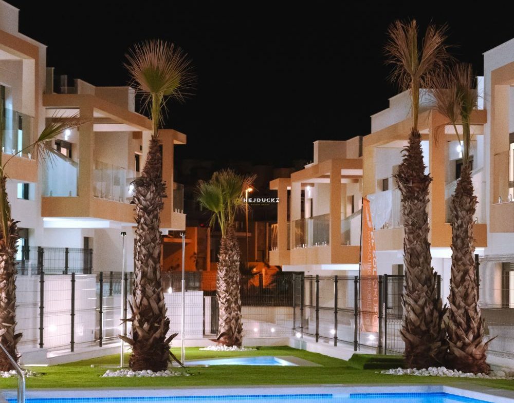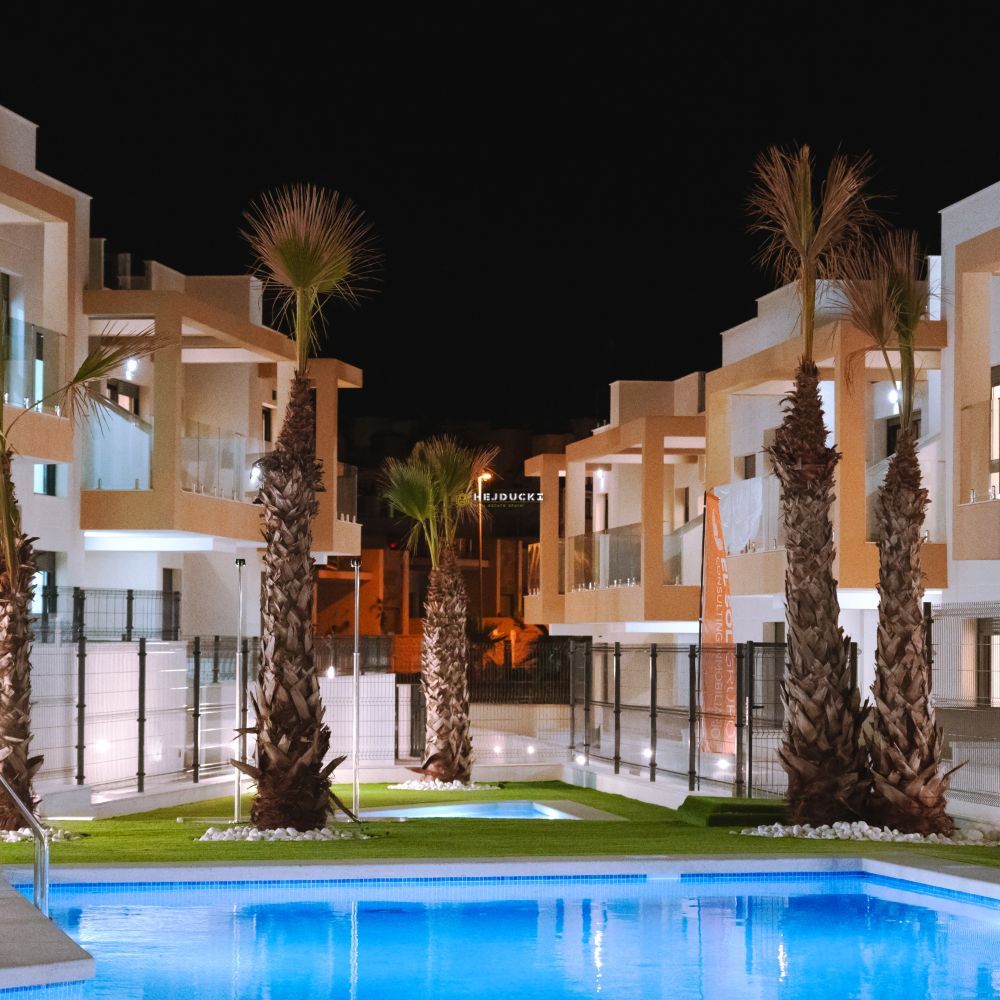 Gotowe bungalowy na sprzedaż w słynnej dzielnicy Los Altos. Górny bungalow posiada przestronne solarium z otwartym widokiem, dolny bungalow posiada patio. Jest 9 dolnych i 4 górne z dwoma sypialniami i 2 łazienkami, wykończone pod klucz. Idealna oferta dla rodzin pragnących mieć własne miejsce na Costa Blanca. Plaża oddalona jest o około 3 km, wszystkie usługi takie jak bary i sklepy znajdują się w odległości kilku kroków. Dodatkowym atutem jest ładny basen na osiedlu dla mieszkańców. Lotnisko w Alicante oddalone jest o około 1 godzinę jazdy samochodem.