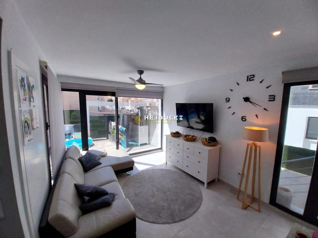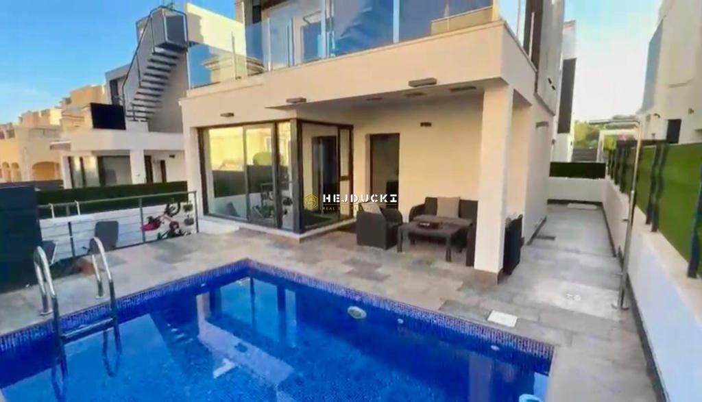 Oferujemy na sprzedaż nowoczesną i przestronną willę, położoną w jednej z najbardziej prestiżowych dzielnic Orihuela Costa, Villamartín. To wyjątkowa propozycja dla osób, które pragną połączyć komfort życia w luksusowym domu z bliskością plaży i pełnym dostępem do wszelkich usług. Willa oferuje 5 przestronnych sypialni oraz 4 eleganckie łazienki, a także w pełni wyposażony salon z kuchnią i solarium. Dodatkowym atutem nieruchomości jest duży, prywatny basen oraz słoneczny taras, idealne miejsce do relaksu i odpoczynku w ciepłych dniach. Orihuela Costa, a w szczególności Villamartín, to region znany z pięknych plaż, prestiżowych pól golfowych, a także licznych restauracji, sklepów i punktów usługowych. To doskonałe miejsce zarówno dla rodzin, jak i osób aktywnych, które cenią sobie wygodę, elegancję oraz bliskość wszystkich udogodnień.