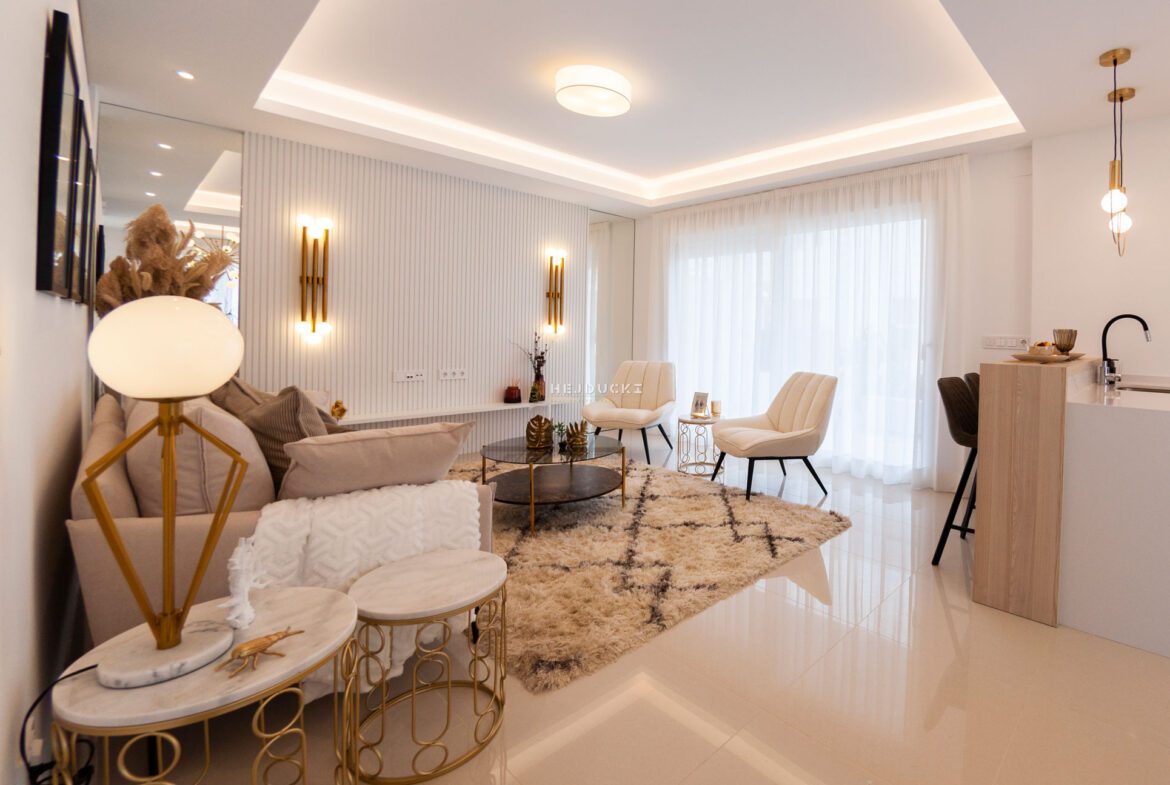 Nowe, ogrodzone osiedle z pięknymi apartamentami z 2 sypialniami w stylu śródziemnomorskim. Idealny dla Ciebie, jeśli szukasz wygodnego, praktycznego domu, w którym możesz cieszyć się pogodą i spokojem Costa Blanca. Położony w Ciudad Quesada, będziesz mógł cieszyć się pięknymi terenami zielonymi i wspólnym basenem, a także prywatnymi obszarami zewnętrznymi własnego mieszkania: duży ogród, jeśli wybierzesz apartament na pierwszym piętrze lub przestronne solarium z wejściem z wnętrza domu, jeśli wolisz mieszkanie na drugim piętrze. Ta nowa rezydencja otoczona jest cichymi, mieszkalnymi i szerokimi alejami, a także znajduje się w odległości spaceru od wszystkich niezbędnych usług: supermarketów, restauracji, ośrodka zdrowia, aptek, pola golfowego, parków dla psów i obszarów naturalnych, takich jak Lagunas de Torrevieja … i tylko 10 minuty. mogą cieszyć się najlepszymi plażami Guardamar i Torrevieja. Do takich miast jak Alicante i na lotnisko można dojechać samochodem w około 35 minut.
