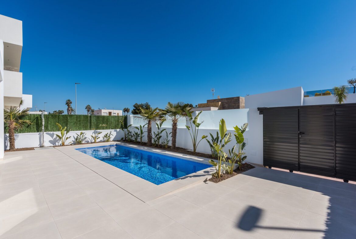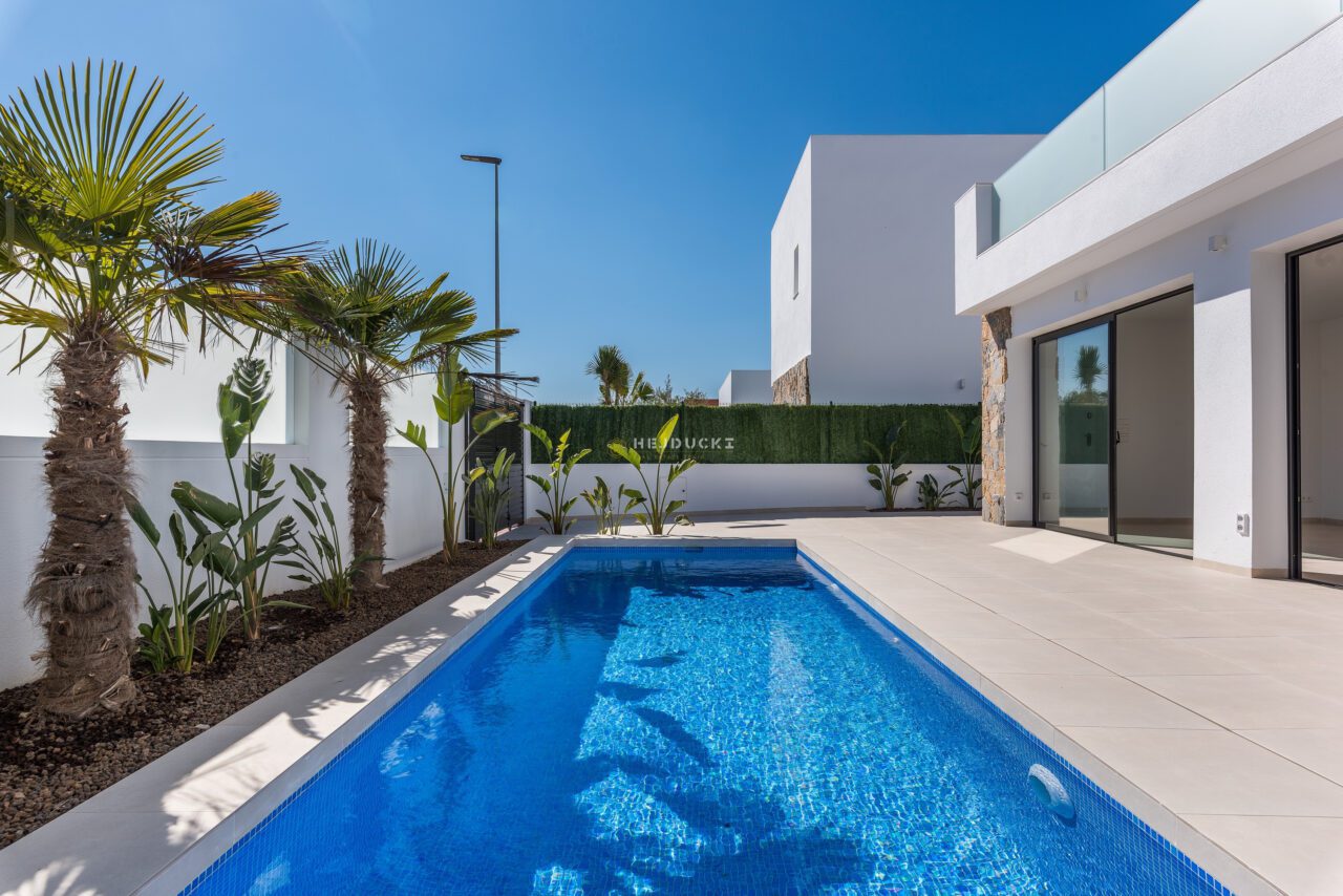 Na sprzedaż nowoczesna willa z basenem w San Javier. Dom budowany jest z najlepszych materiałów, na życzenie klienta dobieramy aranżację wnętrz i ogrodu. Willa ma 3 sypialnie, 2 łazienki, obszerny ustawny salon, oraz duży basen na zielonym ogrodzie. Bardzo dobra lokalizacja tych domów, na pieszo dojdziemy do plaży, barów, restauracji, oraz dużego centrum handlowego. Odległość do lotniska w Alicante to 1 godzina 20 minut jazdy. Zapraszamy na wizytę rekonesansowa aby zobaczyć je na żywo.