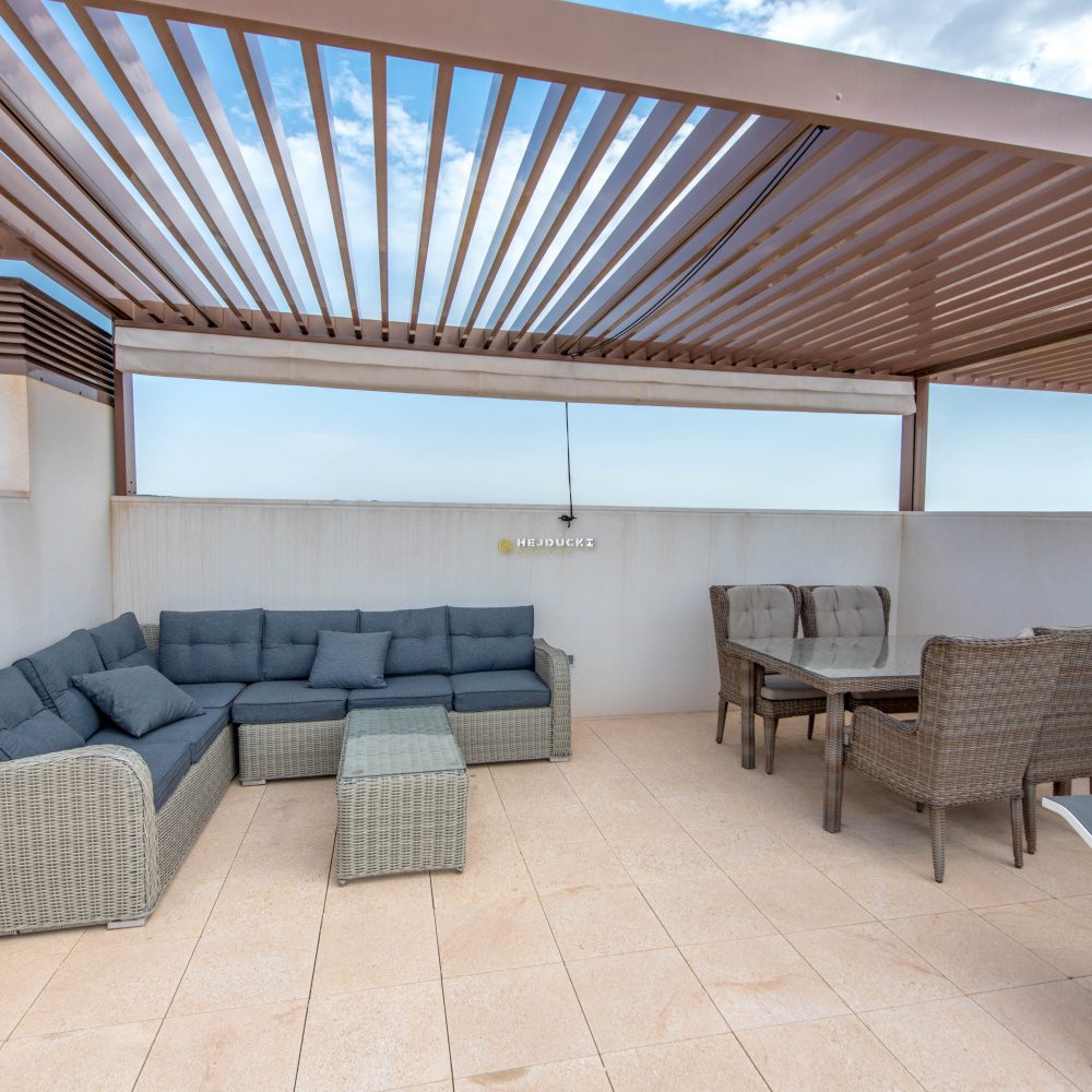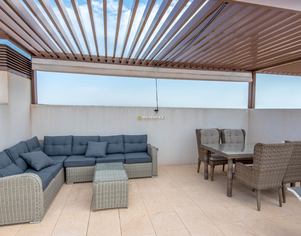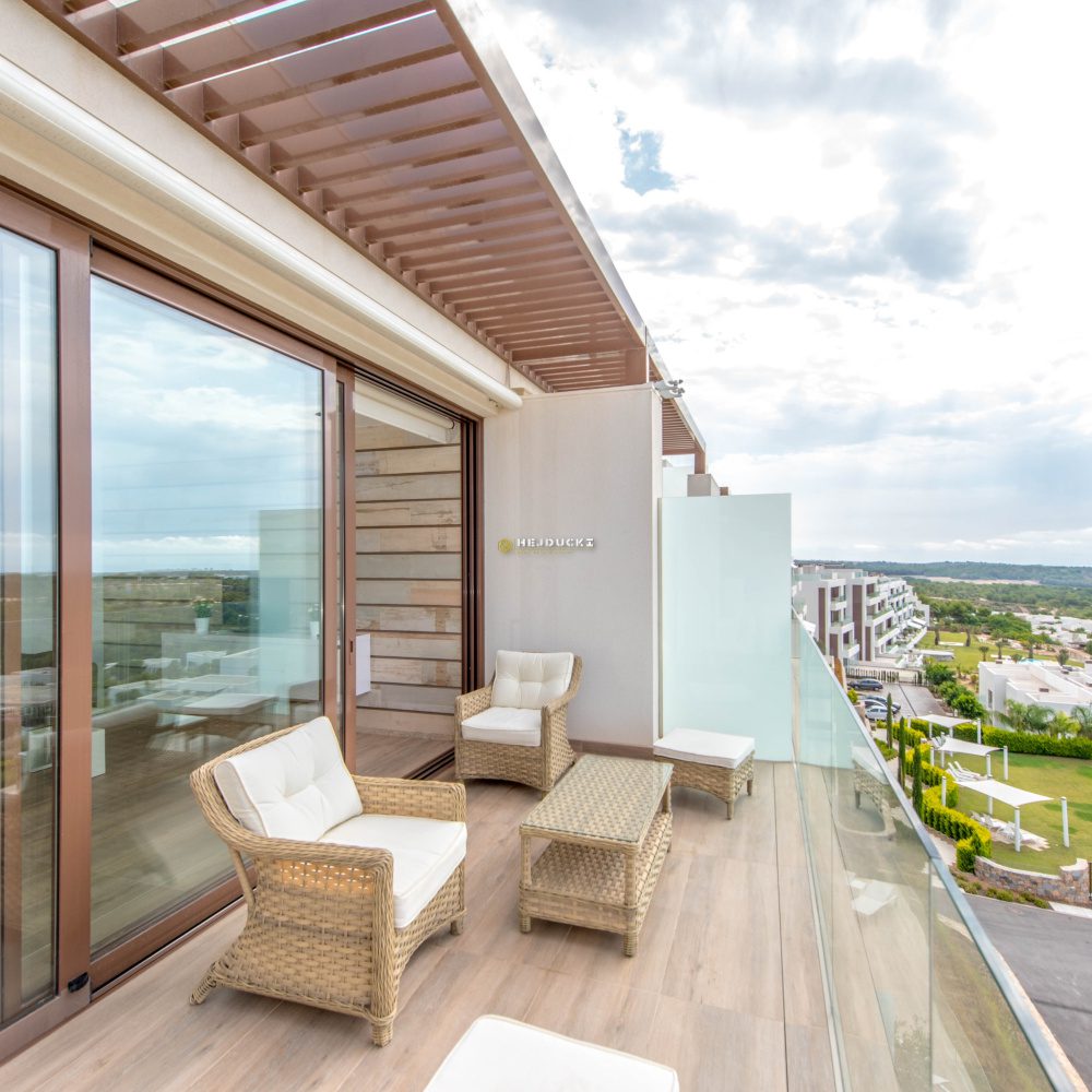 Na sprzedaż luksusowy penthouse w Las Colinas Golf. Ten wspaniały apartament znajduje się na ostatnim piętrze i ma powierzchnię 105 m2. Posiada 2 sypialnie i 2 łazienki, w pełni umeblowane, duży, przestronny salon z kuchnią i jadalnią. Wielkim atutem tej nieruchomości jest duży balkon z widokiem na zieleń, ogólnodostępny basen oraz przestronne solarium z kuchnia dzienna. Do mieszkania przynależy miejsce parkingowe oraz komórka lokatorska w piwnicy. Idealne miejsce dla osób kochających golfa. Skontaktuj się z nami, aby uzyskać więcej informacji.