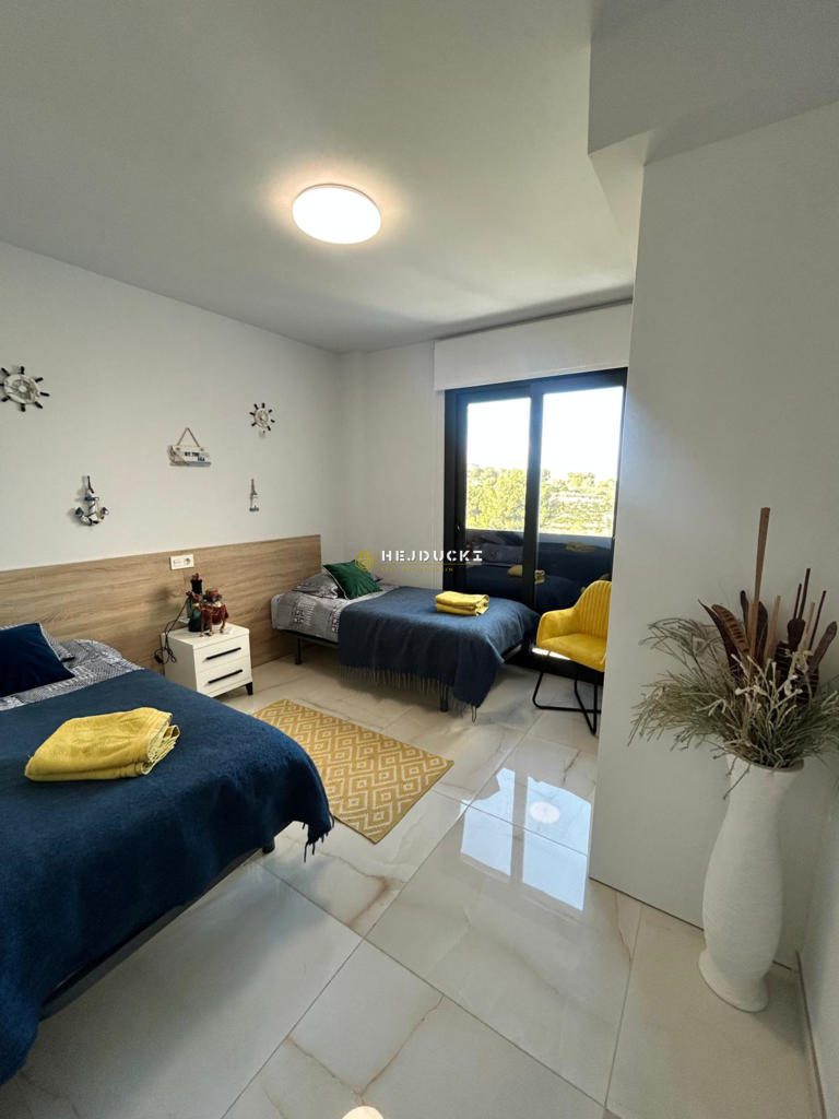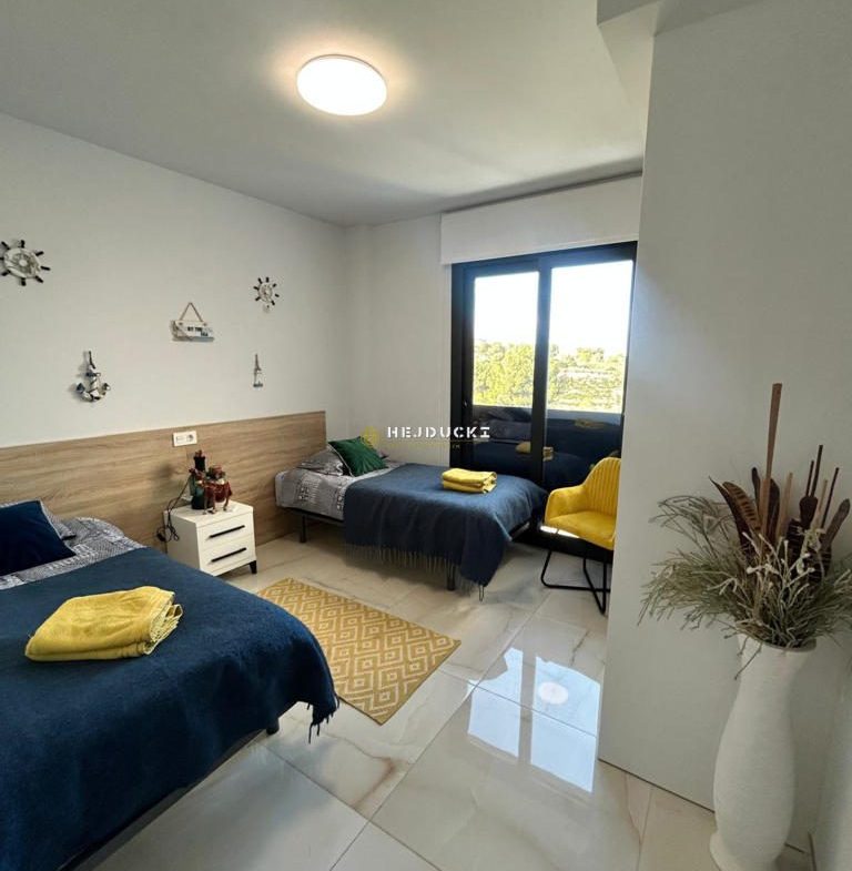 Na sprzedaż piękny apartament na strzeżonym osiedlu w Los Altos, Orihuela Costa. Nieruchomość posiada 2 sypialnie i 2 łazienki, jest w pełni umeblowana i wygląda jak nowa, mimo że ma już kilka lat. Do mieszkania przynależy miejsce parkingowe oraz komórka lokatorska. Apartament sprzedawany jest w pełni wyposażony w sprzęt AGD i meble, bez rzeczy osobistych.