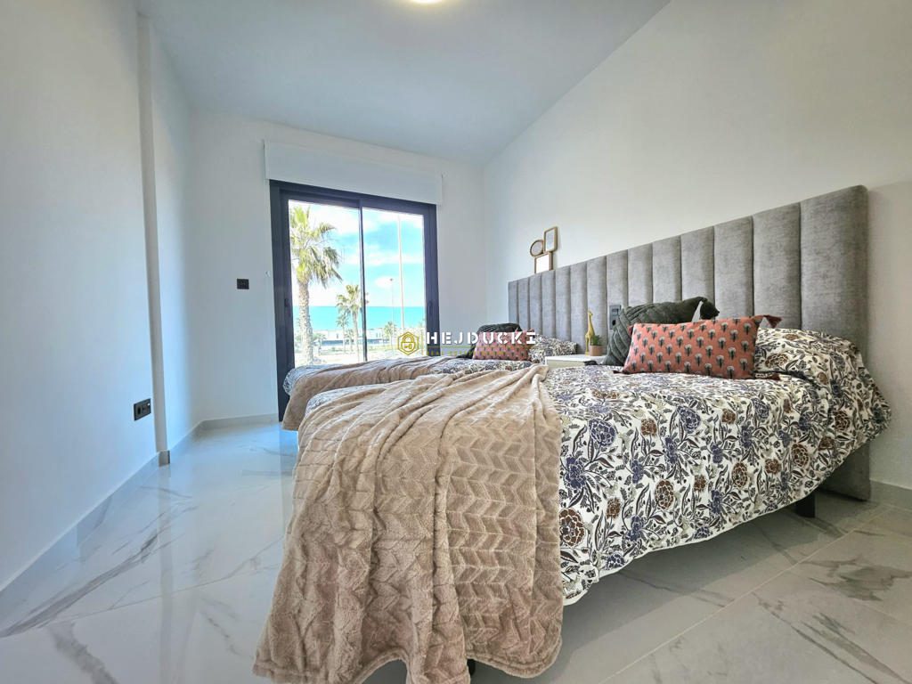 Na sprzedaż nowoczesne, w pełni wykończone mieszkanie położone na strzeżonym osiedlu z basenem w El Raso, w pobliżu Guardamar del Segura. Nieruchomość jest gotowa do zamieszkania od zaraz, sprzedawana w standardzie “pod klucz”, z pełnym wyposażeniem i sprzętem AGD.
