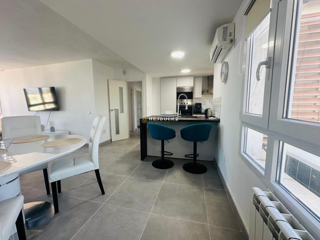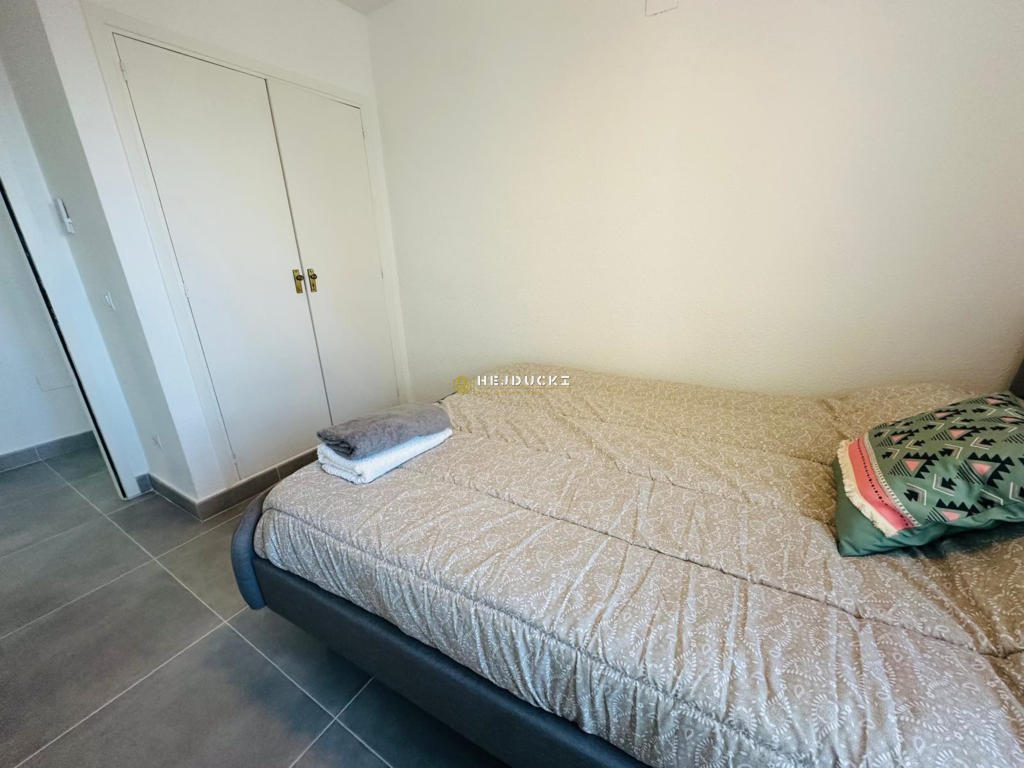 Na sprzedaż w pełni wyremontowany apartament z 3 sypialniami i 1 łazienką, położony na zamkniętym, zadbanym osiedlu w Gran Alacant, blisko lotniska w Alicante. Nieruchomość oferuje piękny widok na morze oraz dostęp do licznych udogodnień, takich jak basen, korty tenisowe, rozległe tereny zielone oraz wiele miejsc parkingowych na terenie osiedla. Dodatkowym atutem jest autobus zjeżdżający bezpośrednio nad morze, co zapewnia wygodny dojazd na plażę. Idealna propozycja zarówno na wakacje, jak i do zamieszkania przez cały rok.