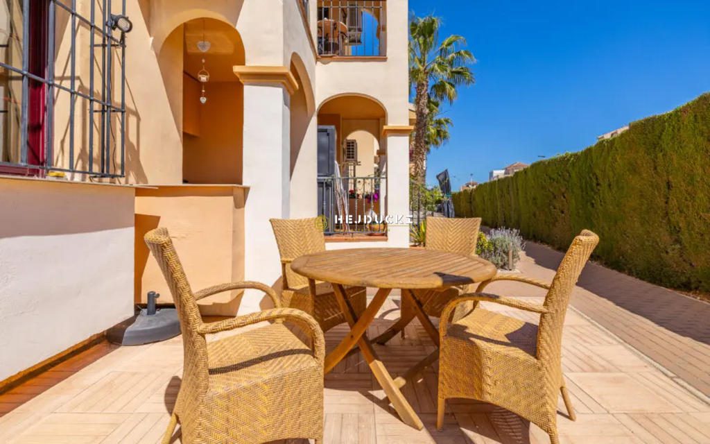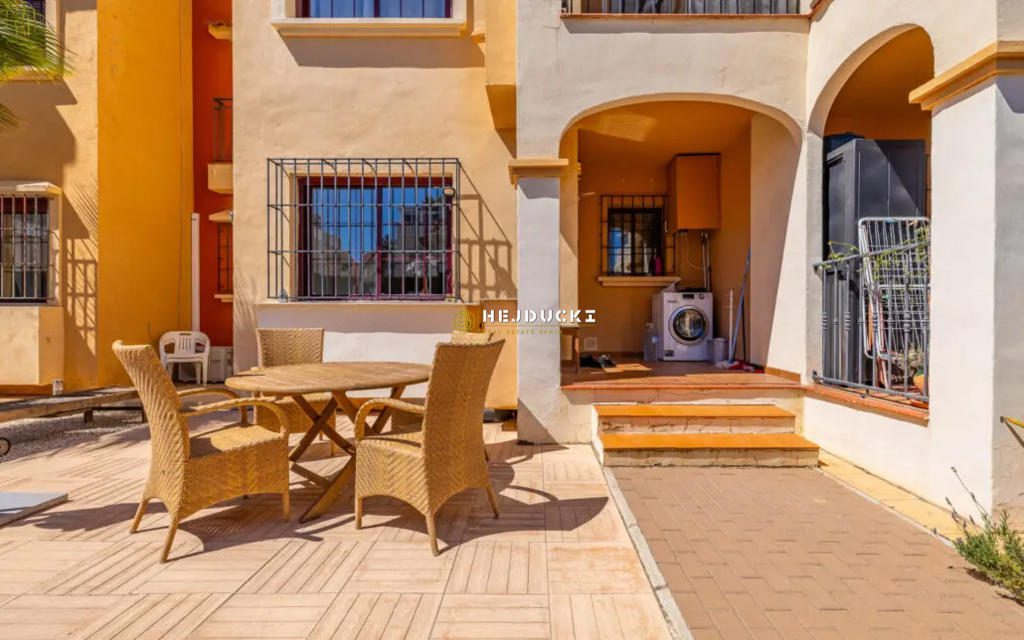 Prawdziwym atutem tej nieruchomości jest słoneczne patio idealne miejsce na poranną kawę, relaks z książką czy kolacje pod gołym niebem w ciepłe, hiszpańskie wieczory.